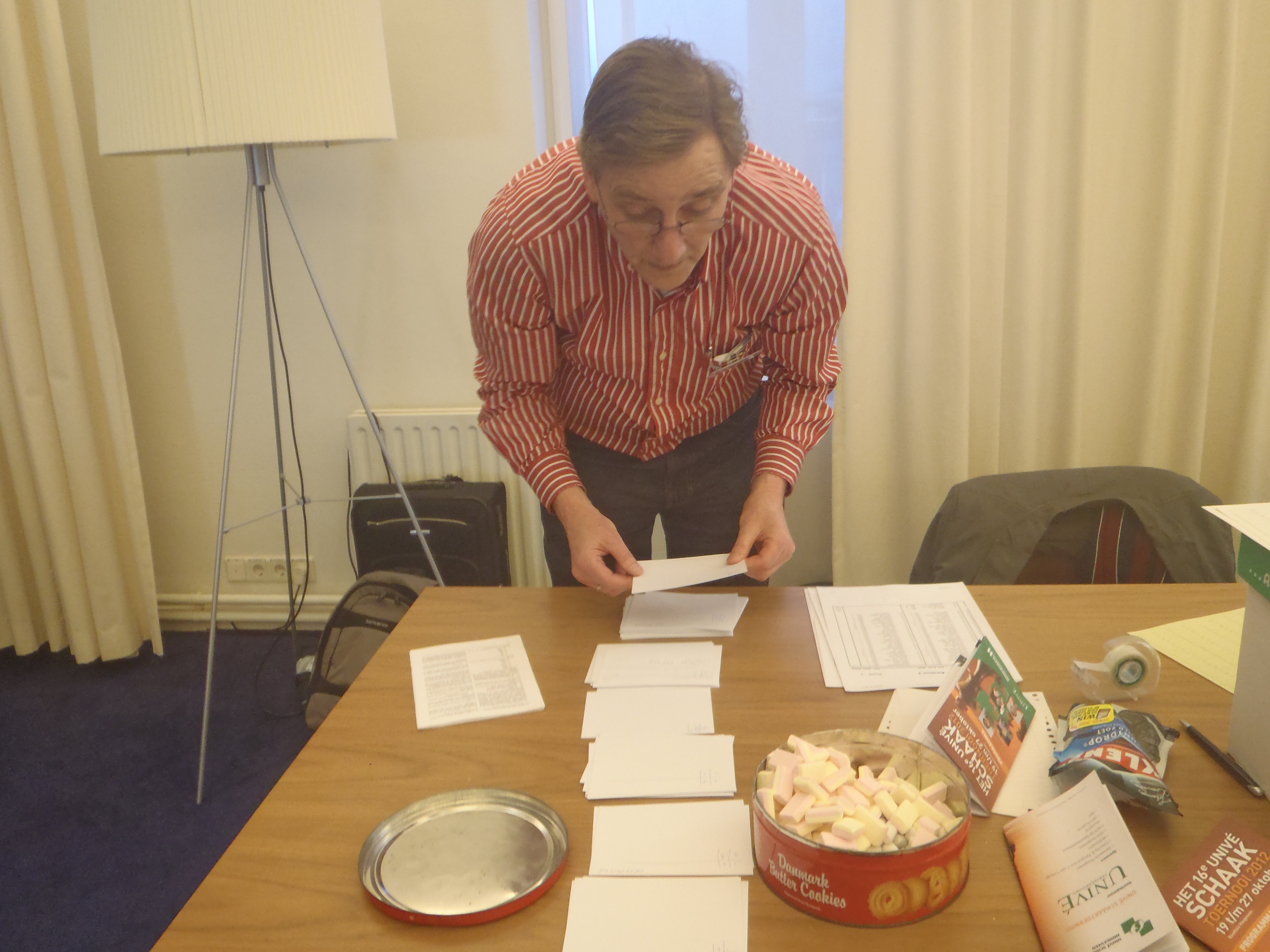 Ton ging er eens goed voor zitten en wist de tegenstander in de problemen te brengen. Met een mooie combinatie, ingeleid met Dame h8 schaak, wist Ton een stuk te winnen. Met ook nog een koning in het vrije veld tegenover zich wist Ton dit simpel af te maken.
