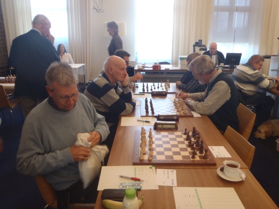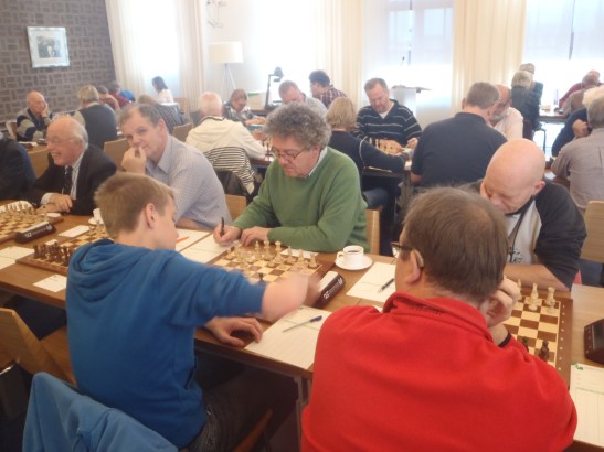 Vandaag was het anders dan andere dagen. Het was welliswaar mooi weer, maar wel een heel stuk kouder. 6 graden is toch minder dan 18 graden. Op weg naar de speelzaal werd ik voorbijgelopen door de snelle Jaap Vogel. Op mijn opmerking: “Die heeft er zin in” antwoordde hij: “neen, ik heb het koud”. Blijkbaar is kou voor Jaap een goede motivatie want hij tikte zijn partij netjes naar winst.