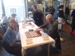 Arie had het makkelijk doordat zijn tegenstandster alles probeerde af te ruilen waardoor Arie eerst één en later twee pionnen wist te winnen. Als ik eerlijk ben een partij de Open groep onwaardig. Nu heeft de tegenstandster wel een lage rating (1880) maar hier moet je meer van maken.