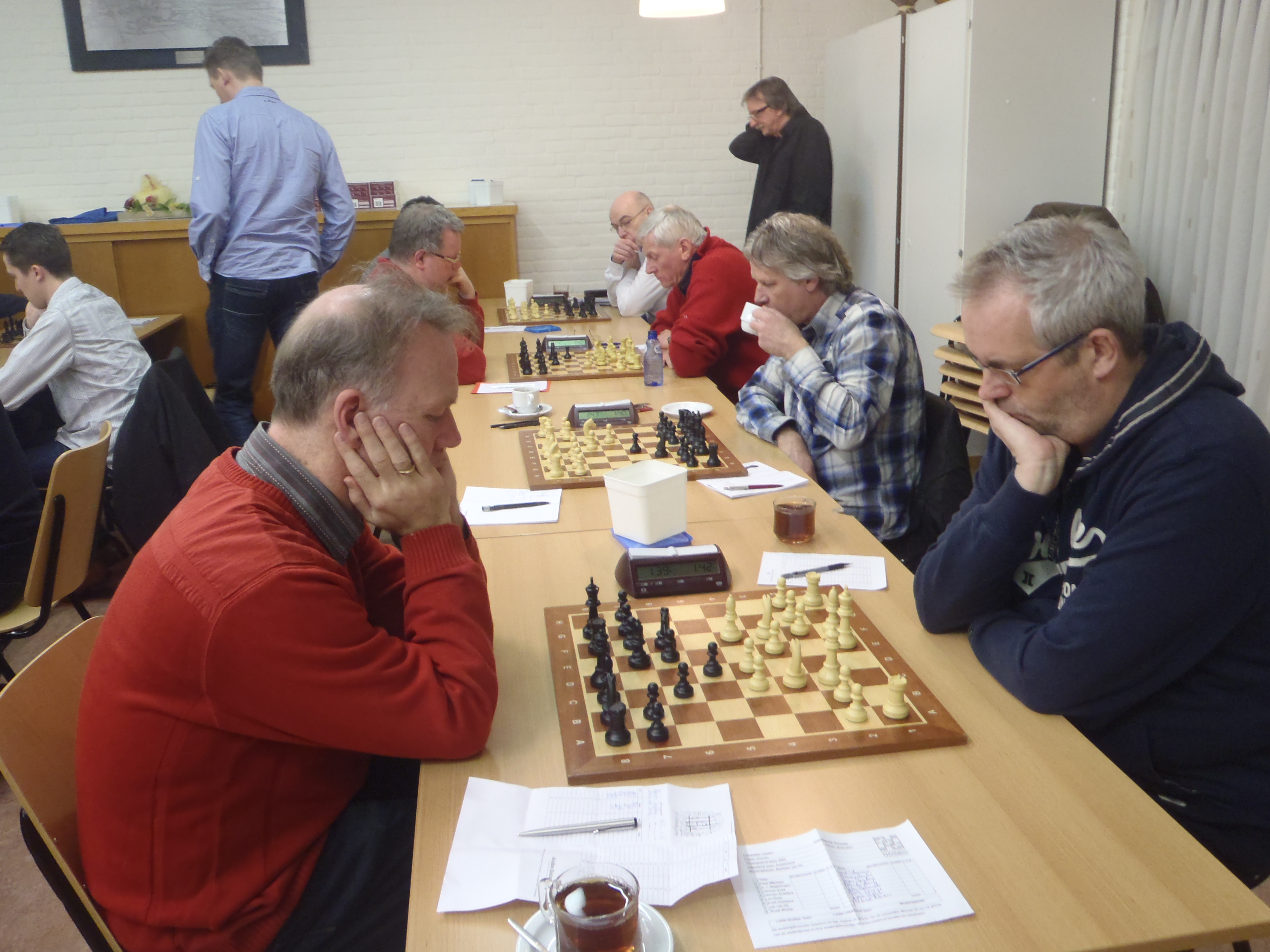 Van de wel aanwezig sterke spelers was wat meer weerstand verwacht. Zoals het nu ging werd de winst eenvoudig binnengehaald. Als eerste was Herman Snelders klaar. Zijn tegenstander dacht op politieke wijze zijn partij te spelen. Zo van als ik iets geef dan krijg ik iets anders terug. Herman is wars van politiek en dacht er niet over iets terug te geven. Toen de tweede pion werd veroverd met een overweldigende stelling gaf de Oostermoerder (oud emmenaar Hans de Graaf) op.