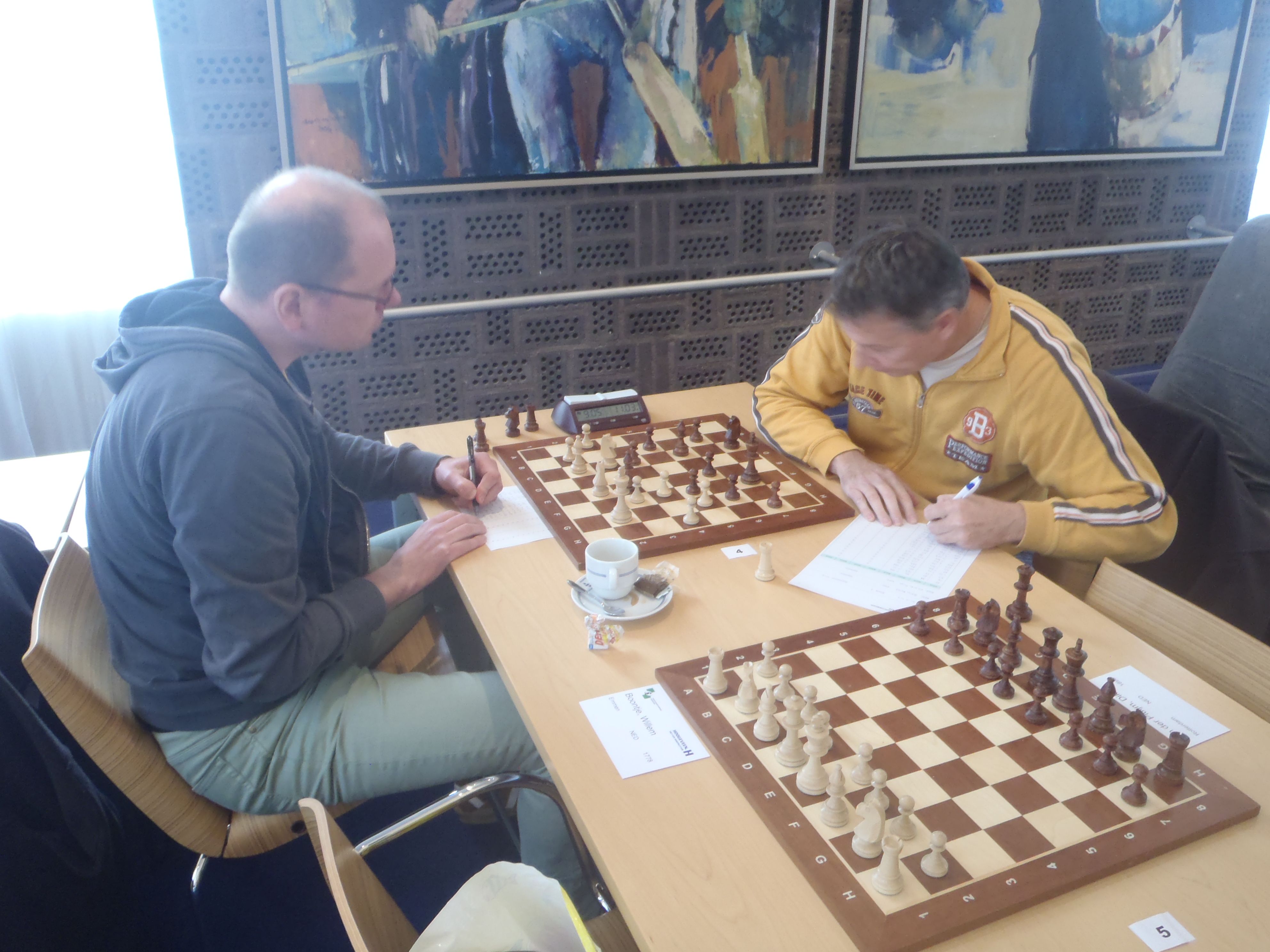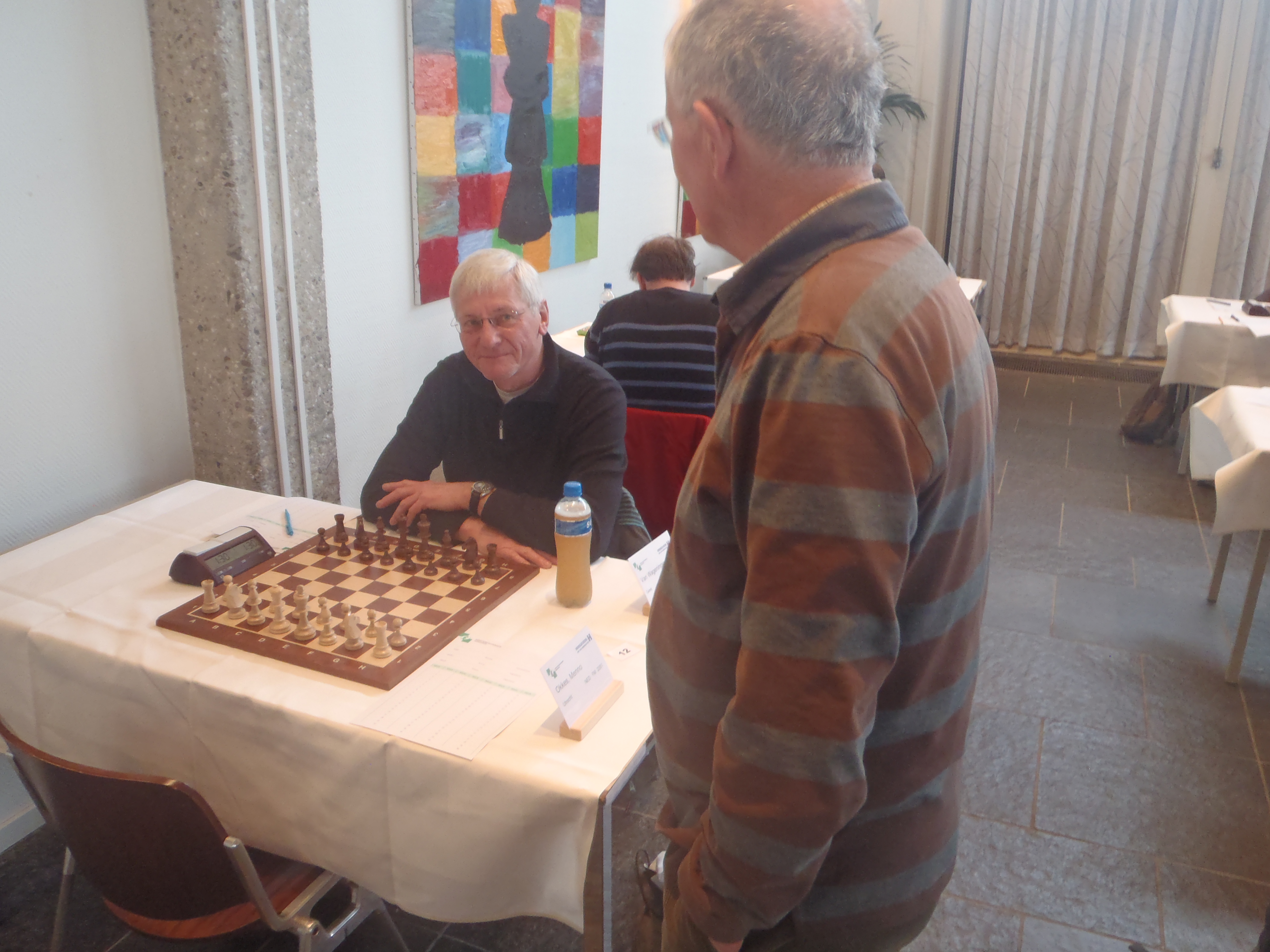 Herman speelde een puike partij met zwart. Het is een genot om te zien dat Herman weer een ster is in zijn specialiteit. Met kleine middelen en goed positiespel de druk opvoeren en als de kans zich voordoet de boel afmaken. Ook dit keer lukte het weer. Won eerst een pion en later een tweede. In een dubbel toreneindspel met vrije a- en b-pion was het alleen een kwestie van niet blunderen. Er werd nog lang doorgespeeld, maar de uitslag werd er niet anders door. Hierdoor is Herman met 3 uit 3 één van de 3 koplopers. Morgen moet Herman tegen oude bekende Joop Hummel.