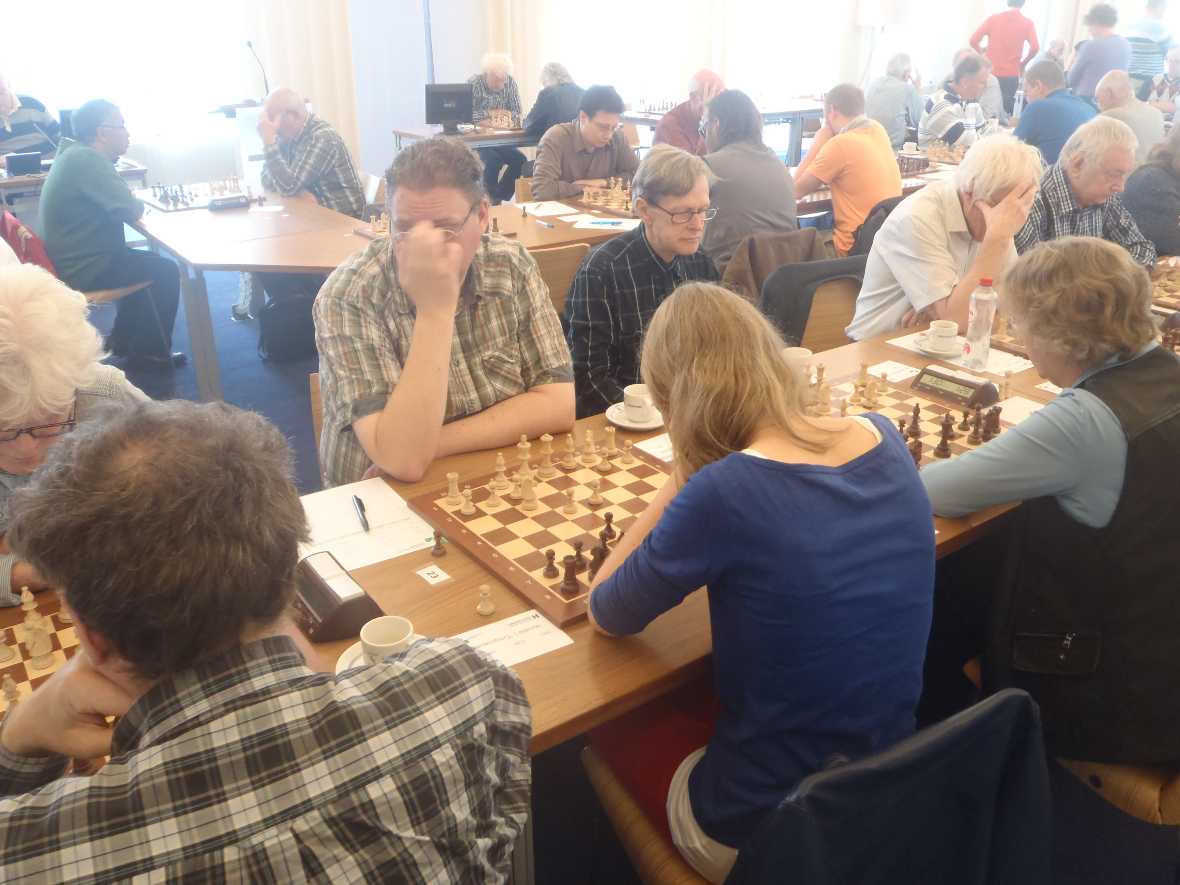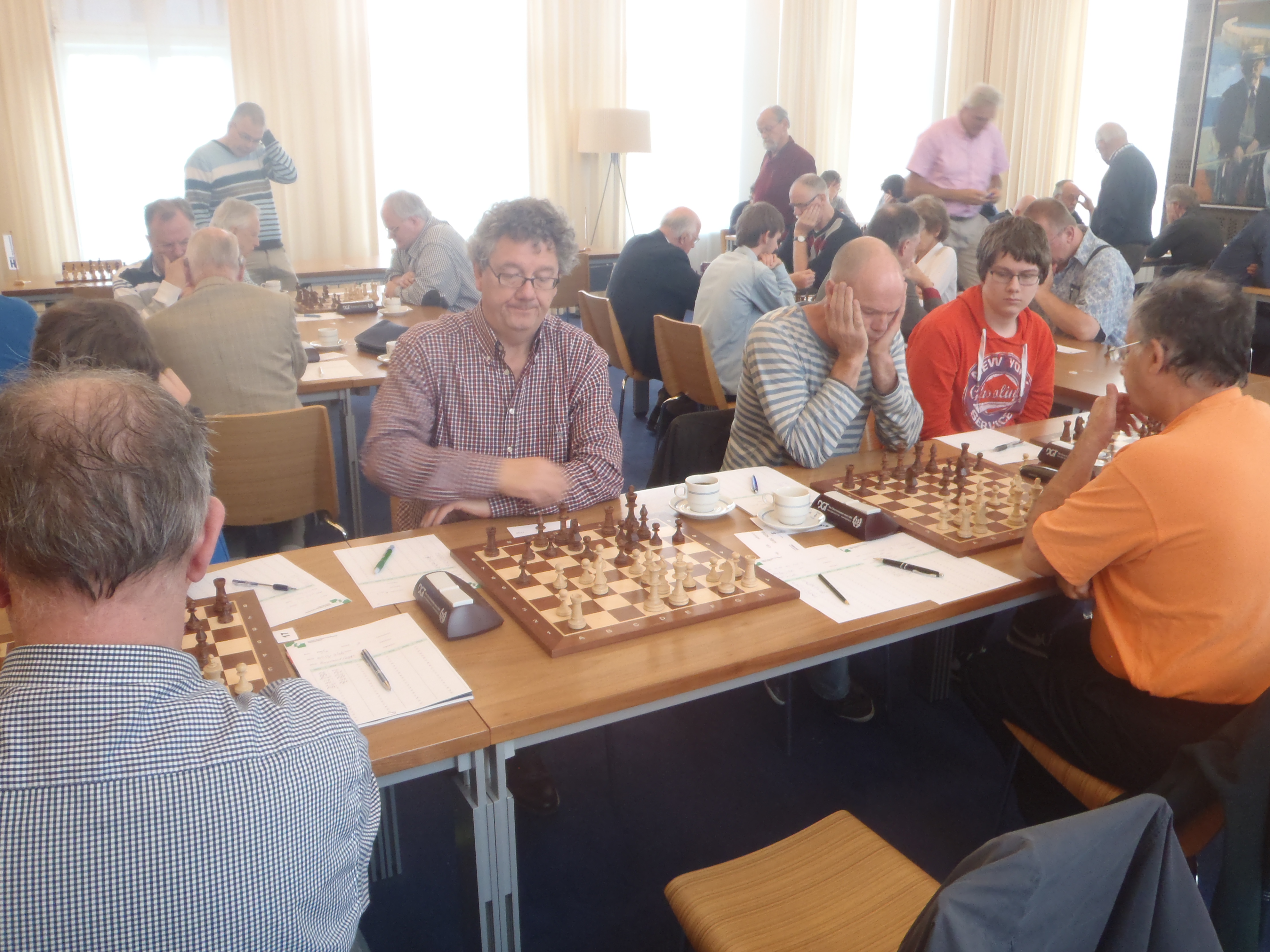 In de Opengroep speelde Arie opnieuw zijn spelletje, maar voor zover ik het kon zien ging het niet zo goed als de eerste twee ronden. Hij kwam al snel onder druk te staan en de batterij van de tegenstander op de b-lijn leek mij dodelijk. Ik moet wel wat voorbehouden maken. Arie zat tegen de muur en daar mag je als toeschouwer niet komen. Je kijkt dus letterlijk van afstand toe en dan zie je het niet altijd duidelijk. Op moment van schrijven staan de partijen nog niet op de site van Univechess. Ik kan het dus mis hebben met mijn commentaar.