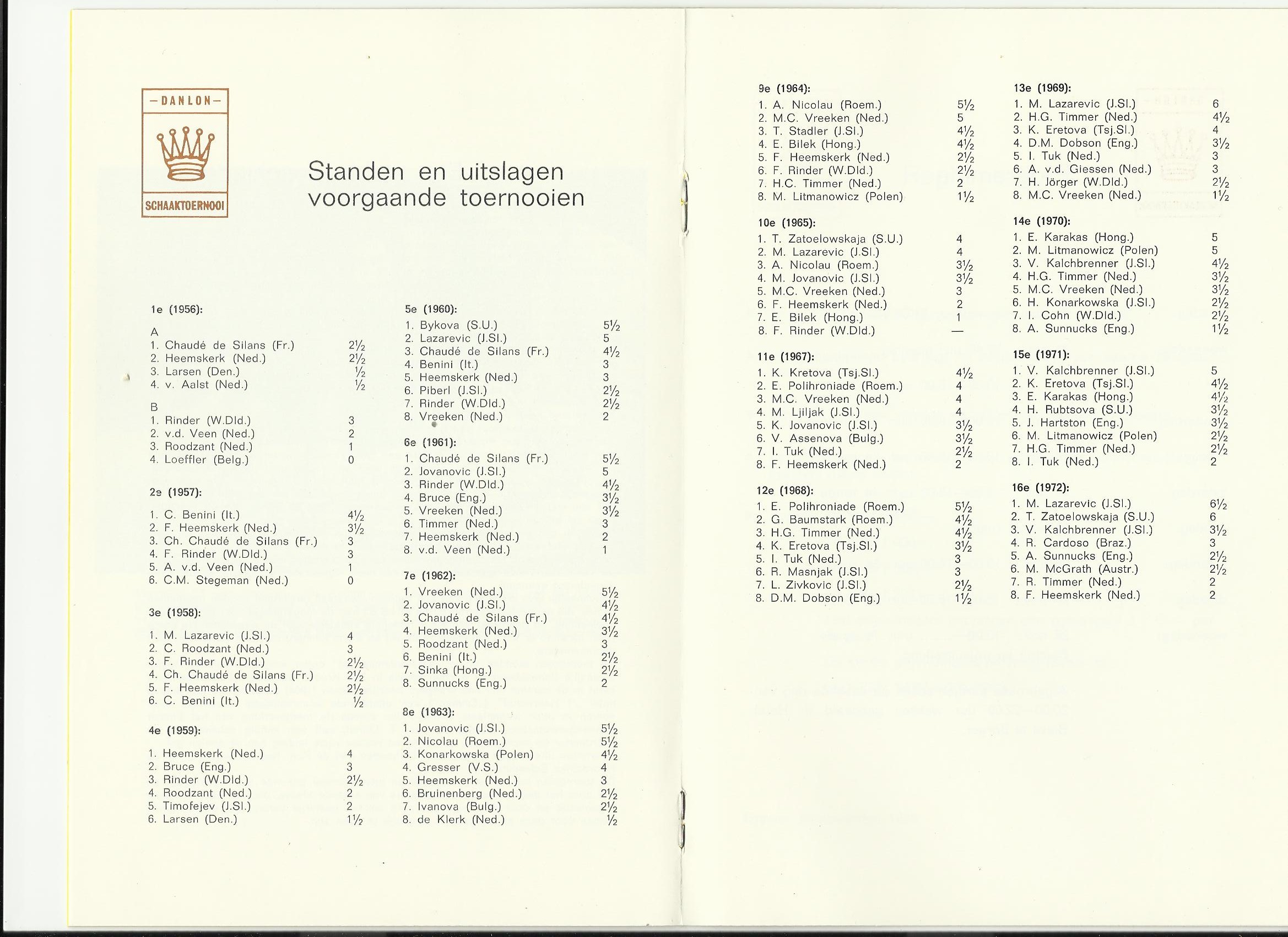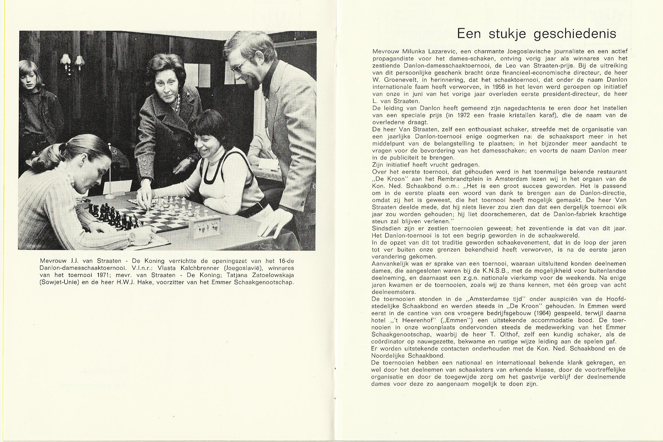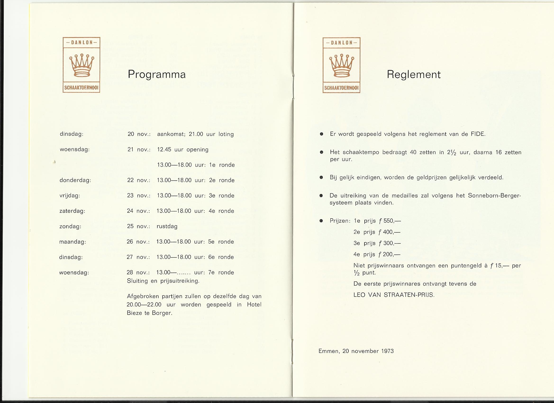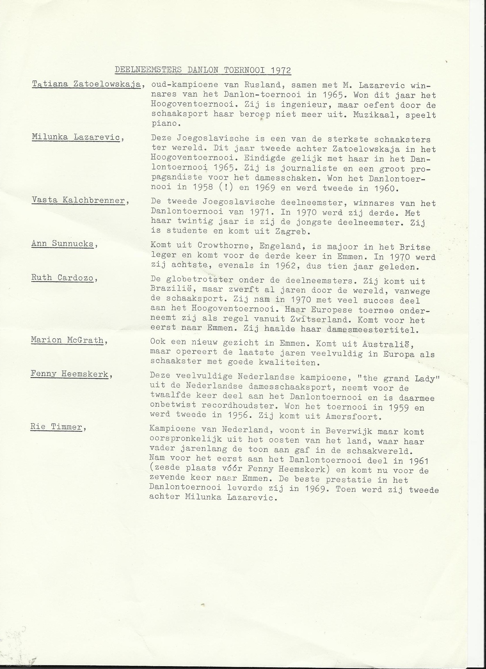 Zoals u ongetwijfeld weet was er vroeger in Emmen het befaamde Danlontoernooi. In het archief kom ik de volgende toernooifolder tegen. Dit is een gestencilde uitgave (zoals zo vaak in die tijd) waarmee het toernooi aangekondigd werd. Daarna vindt u een overzicht van de deelnemers het jaar daarvoor (1972 dus). Als je op de foto onderin klikt dan wordt hij groot genoeg om te lezen. Een andere mogelijkheid is om de Ctrl knop ingedrukt te houden en dan met de roller op uw muis te vergroten of te verkleinen.
