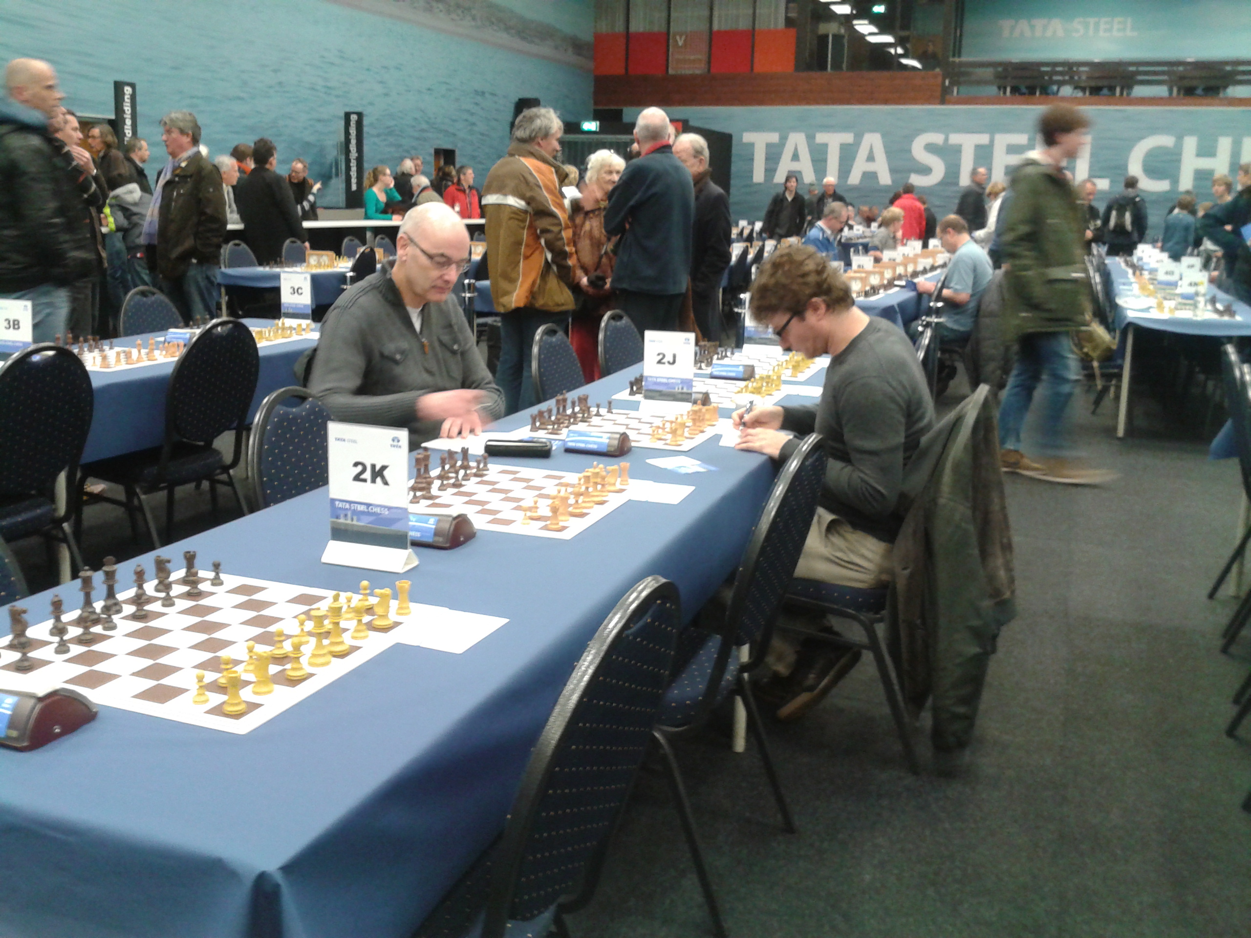 De weekend 4-kampen waren een mooi, zo voor een eerste keer. De vrijdagavond was de eerste ronde, toen was het nog redelijk rustig in de zaal. Op de zaterdag was dat wel anders. De grootmeesters waren begonnen en dat trok vele toeschouwers (waaronder ook Ton).