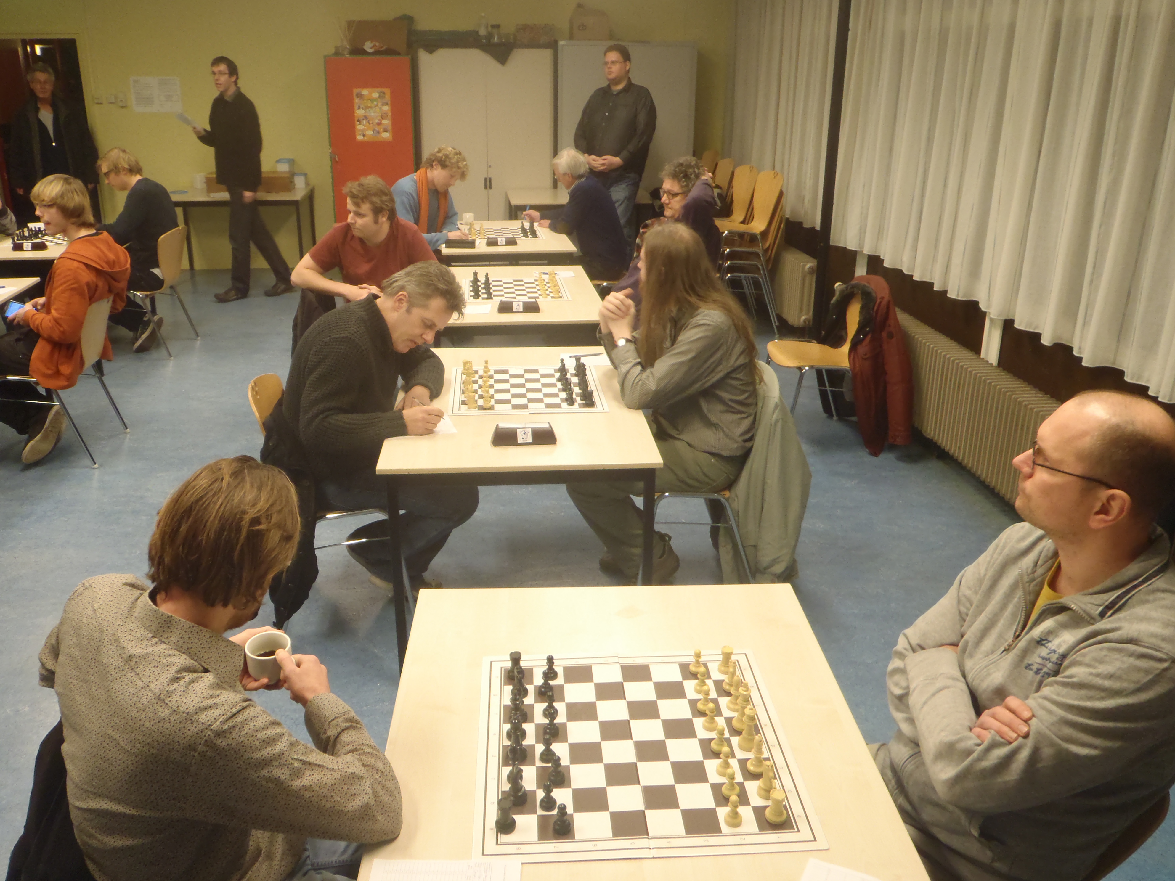 De wedstrijd werd gespeeld in Assen. Assen had aangeboden om alle kwartfinales gelijktijdig te laten spelen in Assen, gelijk met Assen 2 tegen Hoogeveen. Alleen Sissa en ESG gingen op het aanbod in. Beter in een gezellige ruimte met meer spelers en toeschouwers van de interne dan met vier tegen vier in een verder leeg denksportcentrum. De toeschouwers waaronder uw verslaggever vonden het ook prettig. Immers er waren acht ipv vier borden te genieten (+ een flink aantal in de interne van Assen) en veel meer bekenden om een praatje mee te maken. Want als de schakers in de beslissende fase in de denktank gaan dan ga je als toeschouwer graag een kopje koffie met kletskoeken halen. Het kletsen regel je zelf, maar dan moeten er wel mensen zijn met wie je kunt kletsen.