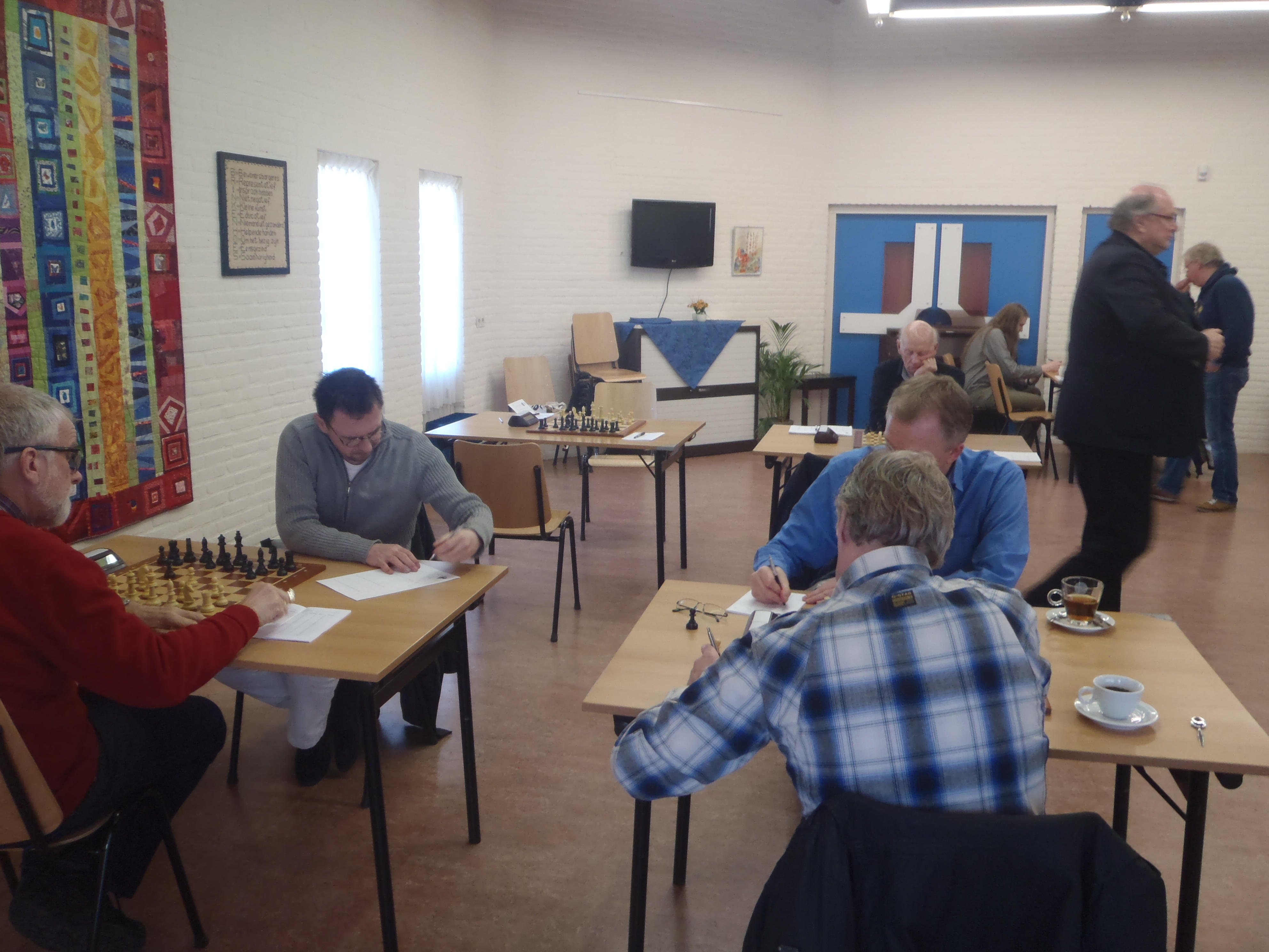 Een dikke verlies, terwijl het een overwinning had moeten worden. Erger is nog dat de concurrenten die we moeten inhalen wel wonnen. De enige club die maar 2 punten voor staat is Pallas Deventer. Die hebben op papier de sterkste spelers, maar verloren nu al weer voor de vierde keer met 4,5-3,5. Als ze zo slecht blijven spelen hebben we nog een kleine kans. De volgende twee wedstrijden winnen is dan wel nodig. En dan is het nog oppassen, want 6 punten kon weleens niet genoeg zijn om degradatie te ontlopen.