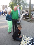 We stonden mooi in de loop en wie dat wilde, kon rustig kijken wat dat ook al weer was: SCHAKEN. Daarbij hielp het grote schaakspel op grond. Dat trok vooral de aandacht van ouders met kleinere kinderen, die er wat graag mee wilden spelen.