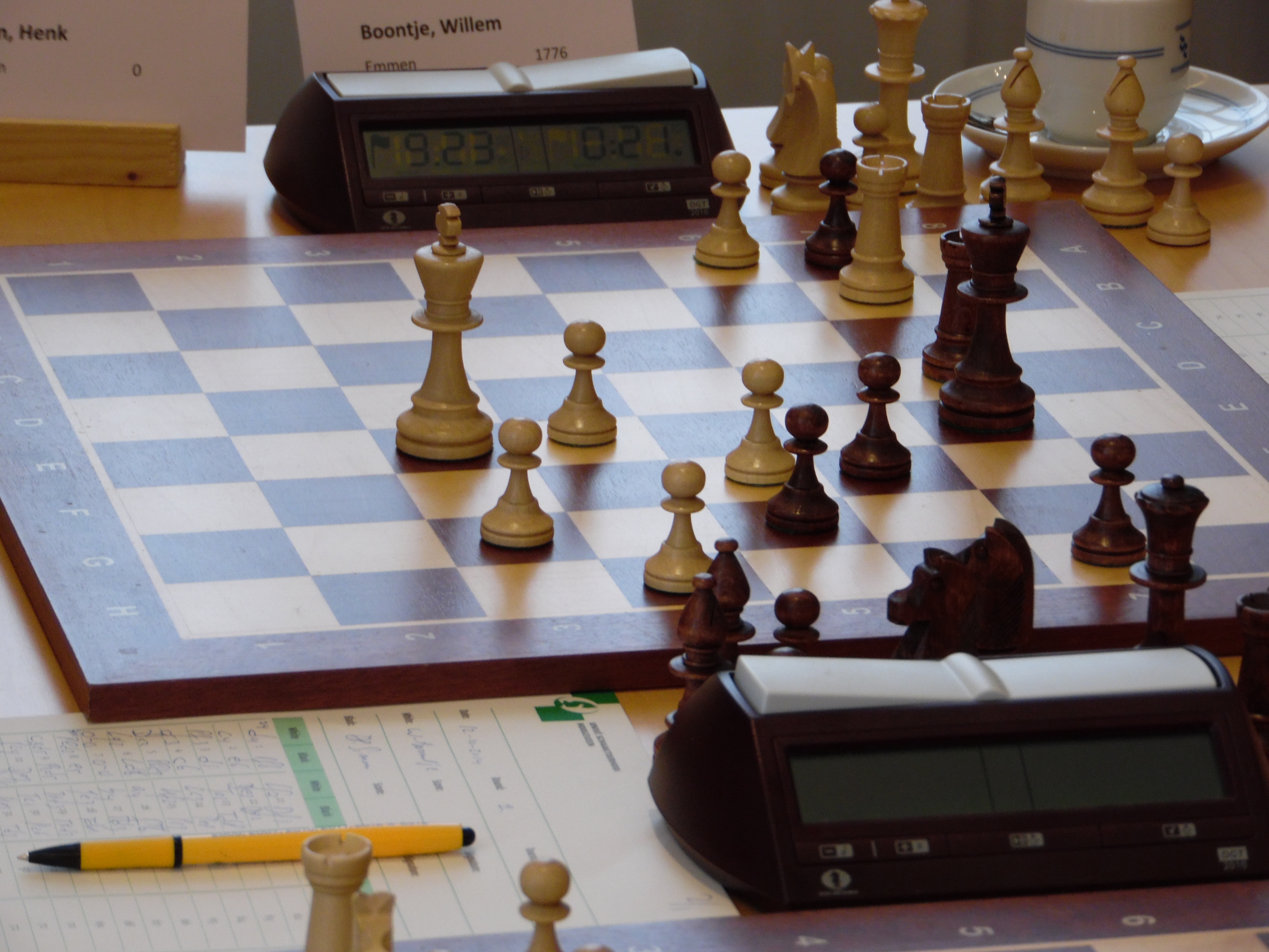 Het leek allemaal geweldig voor Evert. Had de betere aanvalsstelling, kwam een pionnetje voor. De tegenstander wist echter voldoende compensatie te ontwikkelen. Ergens zal Evert gewonnen hebben gestaan, maar zoals het ging werd de pluspion veroverd en kwam er een gelijkwaardige remisestelling op het bord. Een kleine tegenvaller, maar Evert heeft wel genoten. En dat is ook veel waard.