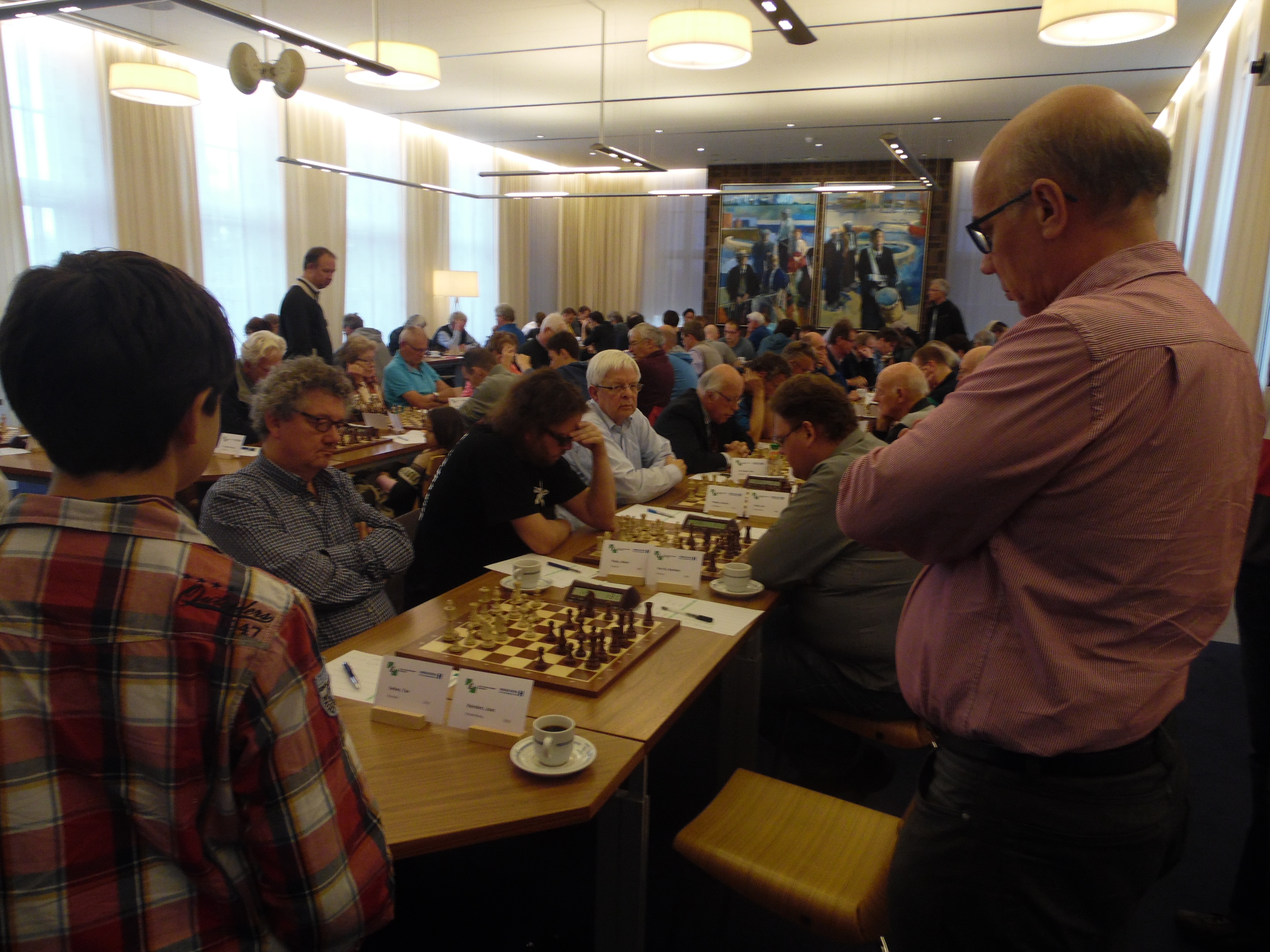 Joan Reinders kijkt staande naar zijn partij tegen Ton.