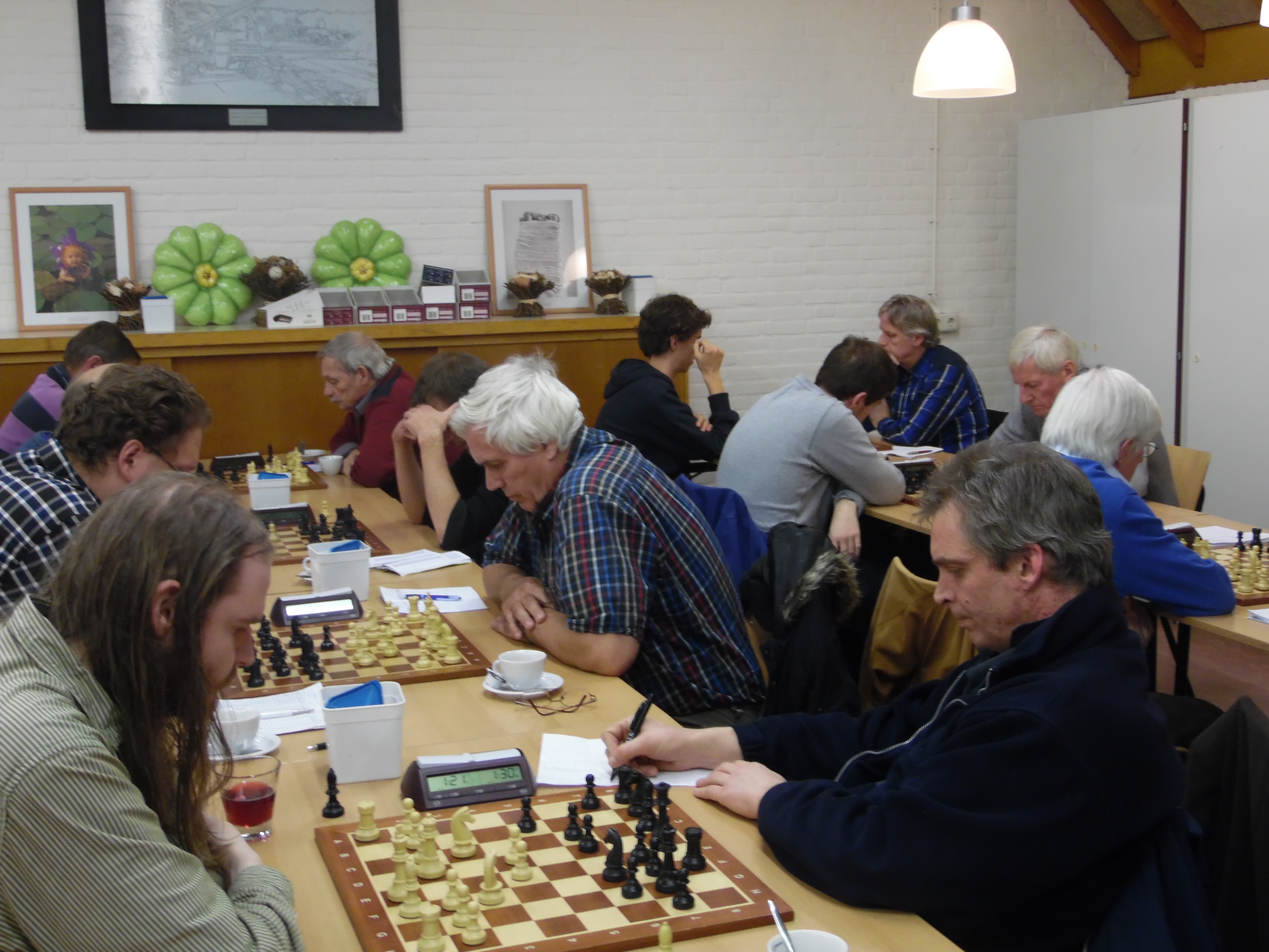 Zo zat de partij van Jan, ondanks een mooi gedekt paard op c5 in zijn geheel dicht en werd snel tot een remise besloten. Een zelfde scenario voor Leo (remise), de enige open b-lijn zag er veel belovend uit met een dubbele toren, maar alle dreigingen konden worden verdedigd. Bij Herman was er een nuanceverschil. De pionnen richting rokkadestelling konden niet helemaal worden geblokkeerd. Hoe de partij verder liep heb ik gemist, maar het leek onschuldiger dan het was. Niet veel later kon een verrassend verlies voor Herman worden genoteerd.