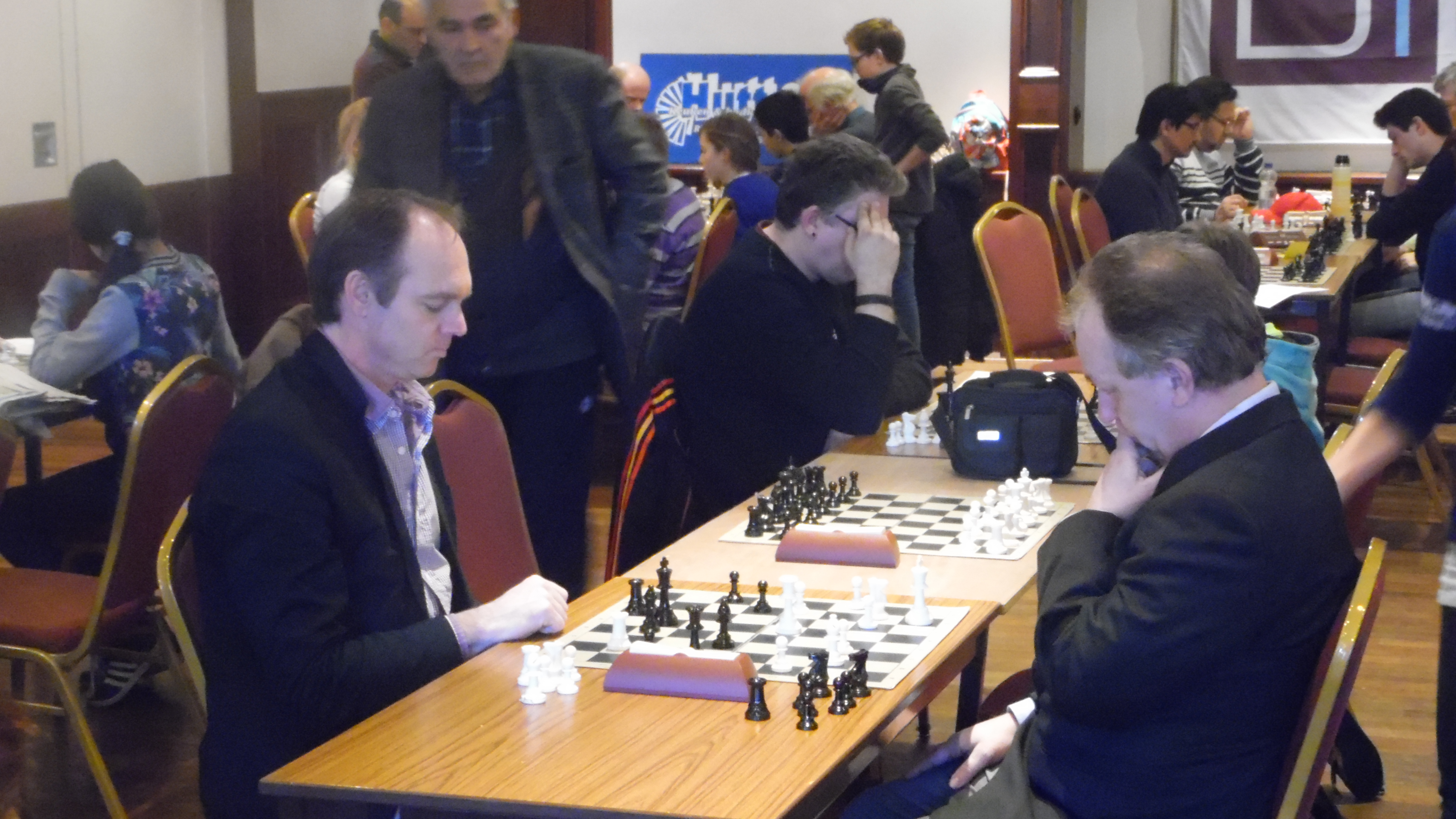 Peter mocht in groep 1 meedoen. Daar zaten ook in de Grootmeesters Degubadze en Ernst en IM’s als Fred Slingerland en Christan Richter. Ulf Anderson stond op de deelnemerslijst, maar heb ik niet gezien. Wel Jaap Vogel, Ivo Maris en Lucas van Foreest. Toen ik weg ging had Peter een score van nul uit zes. In de laatste ronde ook een nul. Volgens facebook had Peter kunnen winnen tegen Christian Richter, maar lukte dat niet op tijd.