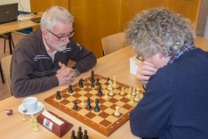Tussen de ronden door was er gelegenheid tot sociale contacten, het eten van stukje banketstaaf, mee gebracht door Ton en even wat drinken aan de bar. De laatste ronde was nog heel erg spannend met de ontmoetingen Marcel – Willem en Herman – Douwe. Marcel haalde na een zware partij het punt binnen