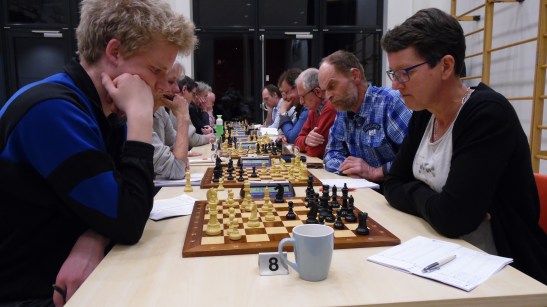 En dat deden ze geconcentreerd. Het grootste deel van ons team zag me pas toen ik foto’s ging maken. Zo stevig zat men op zijn bord te turen. Dat gold ook voor de tegenstanders die ik zonder op het wedstrijdformulier te kijken hun juist naam wist te geven.