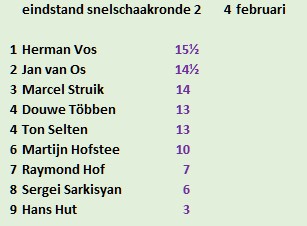 eindstand snelschaken ronde 2 4-2-2019