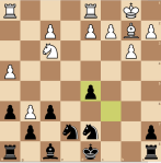 5. Marcelis-Sergei Zwart dacht hier Pc5 te kunnen spelen maar kwam bedrogen uit. Sergei won op een mooie manier een stuk;