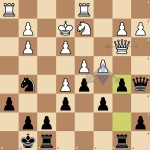 In de vijfde ronde zien wij Marcel tegen Willem, Jan Willem tegen Ton als echte topduels; krakers waar wij van kunnen smullen. Was Willem de vorige keer overtuigend winnaar, nu was Marcel de beste in die partij en ging dan ook met het punt er vandoor. Jan Willem tegen Ton was een behoorlijk spannende partij met wederzijdse kansen maar in de tweede gedeelte was het toch wit die zwart onder zware druk zette. Als Ton in de slotstelling zijn toren op f8 had laten staan en met zijn a-pion was gaan lopen had de uitslag net zo goed anders kunnen zijn geworden.. Dat gold ook voor Marcelis die in een stelling met een kwaliteit meer zijn paard terughaalde waardoor Jan ineens met zijn dame en gesteund door de witveldige loper op zowel g2 als op h1 mat kon geven en dat niet te verhinderen was. Sergei ging met zijn paard op avontuur en rende als een ridder op zijn doel af: De loper op c1 van Douwe. Die mocht hij hebben en daardoor kwam zijn toren op c1 gelijk mooi te staan voor een doorstoot van zijn d-pion.