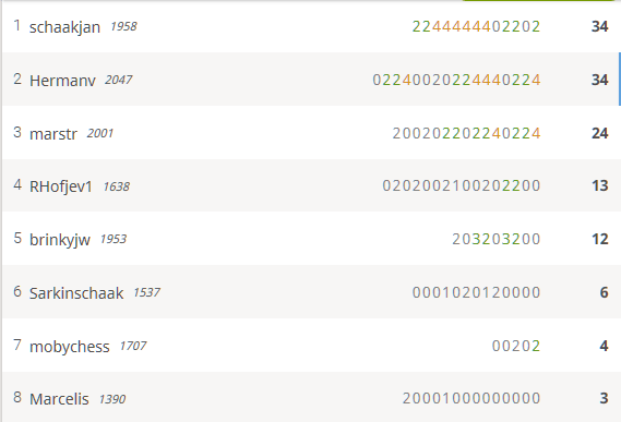 Ook in dit seizoen wordt er weer online gespeeld via Lichess.com. Acht deelnemers die aan de eerste snelschaakwedstrijd meededen. Winnaar werd Jan van Os voor Herman Voss en Marcel Struik. Voor de complete (online) stand op Lichess klikt u hier. Klik vervolgens op de namen en u ziet aan de rechterzijde de namen van de tegenstanders die u heeft aangeklikt. Klik vervolgens op de naam waarvan u die partij wilt bekijken waarop die dan in het beeld zal verschijnen. Komende woensdag 16 september wordt de eerste ronde van een nieuwe serie rapidwedstrijden gehouden. Aanvang 20:00 uur.