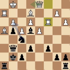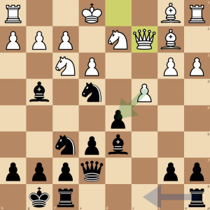Bij de partij van Erik draaide het om de volgende stelling (Na Pe4 van zwart). Een gelijke stelling die in de overgangsfase van opening en middenspel zit. Erik kwam hier op het onzalige idee om Pe4xd2 te spelen. Hij overzag de batterij van dame en loper op h7. Een bekend thema in dit soort openingen. De tegenstander speelde uiteraard Lxf6 en dat kostte Erik uiteindelijk een stuk en de partij.
