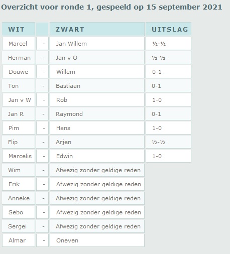 De eerste speelavond. Indelingen volgens keizer, leverde 2 mooie partijen op tussen Marcel – Jan Willem en Herman – Jan