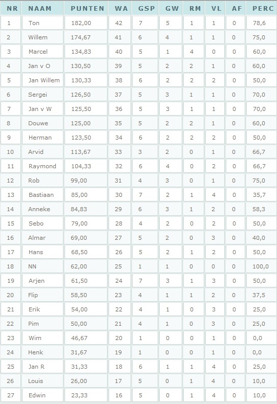 speelavond: maandag 18:30 jeugd maandag 19:45 senioren