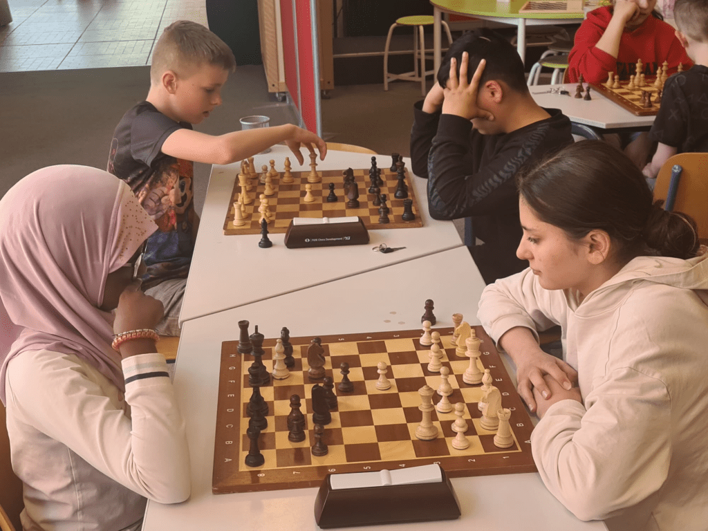 Het probleem was wel dat de meeste basisscholen nog niet zo ver waren om mee te doen. Op dit moment worden er natuurlijk veel ingehaald, niet alleen schaken. Zo deed een vaste deelnemer vandaag mee met de voorronde voor het voetbalkampioenschap. Een ander school is overgestapt op een continu-rooster waarbij men op woensdag tot 2 uur naar school gaat. En dan waren er nog scholen die deze week vooral met de CITO-toetsen bezig waren. Dat alles leidde er toe dat de deelname minder was dan we gewend zijn.
