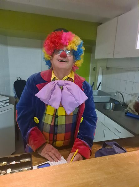 We werden ontvangen door de man op de foto. Het schijnt dat het in Coevorden soms onduidelijk is wie de barman van dienst is. Dat was deze avond niet het geval. Die clown was ook wedstrijdleider en volgens hem moesten we hem in die rol wel serieus nemen. “Hallo, dat lukt natuurlijk nooit was” mijn reactie.