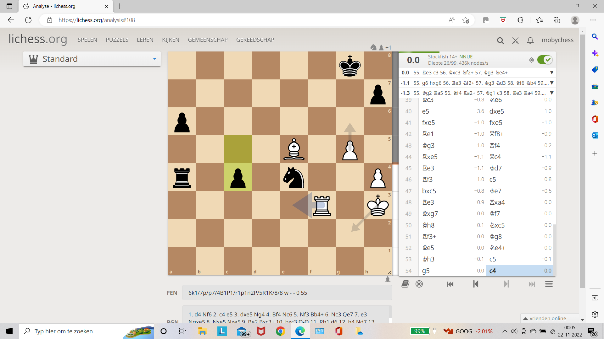 Zie de volgende stelling na de 54.ste zet van zwart.
