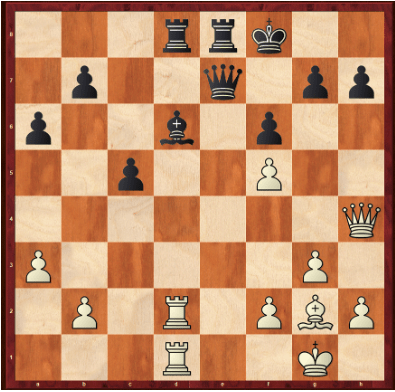 Wit moet hier 32.Da4 spelen. Maar het gespeelde De4 leidt later ook tot winst.