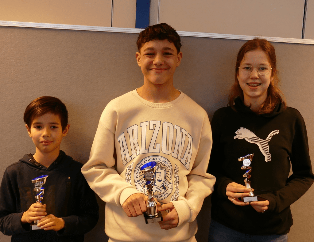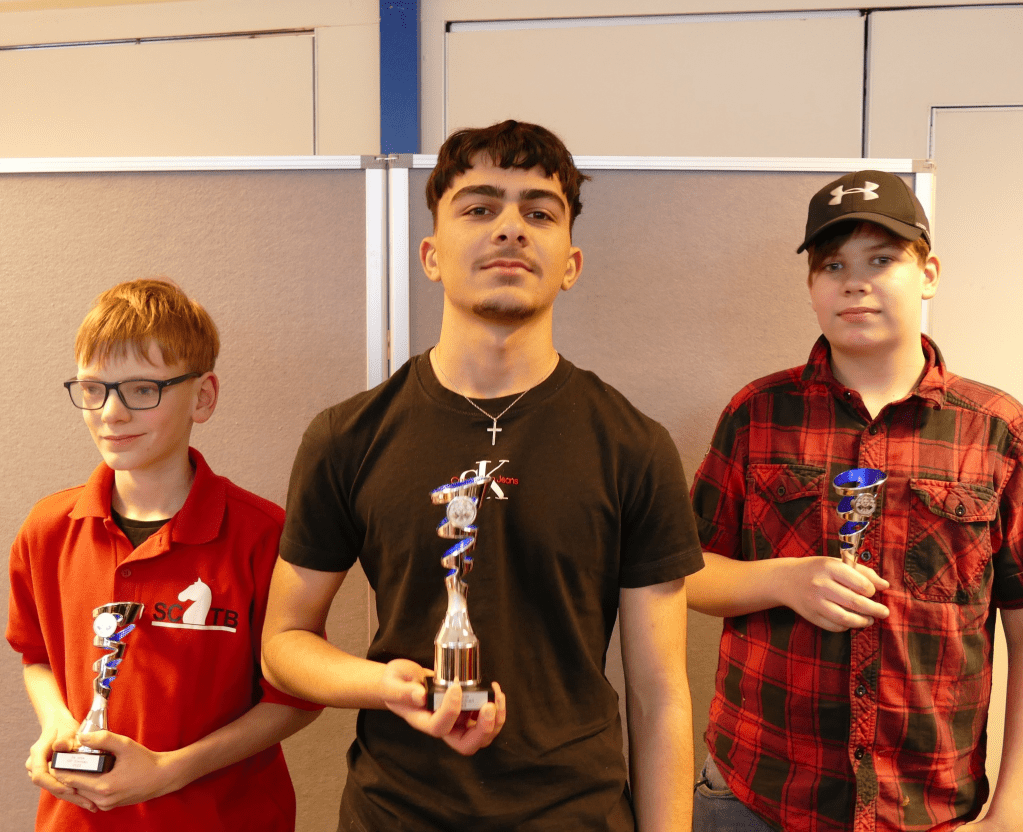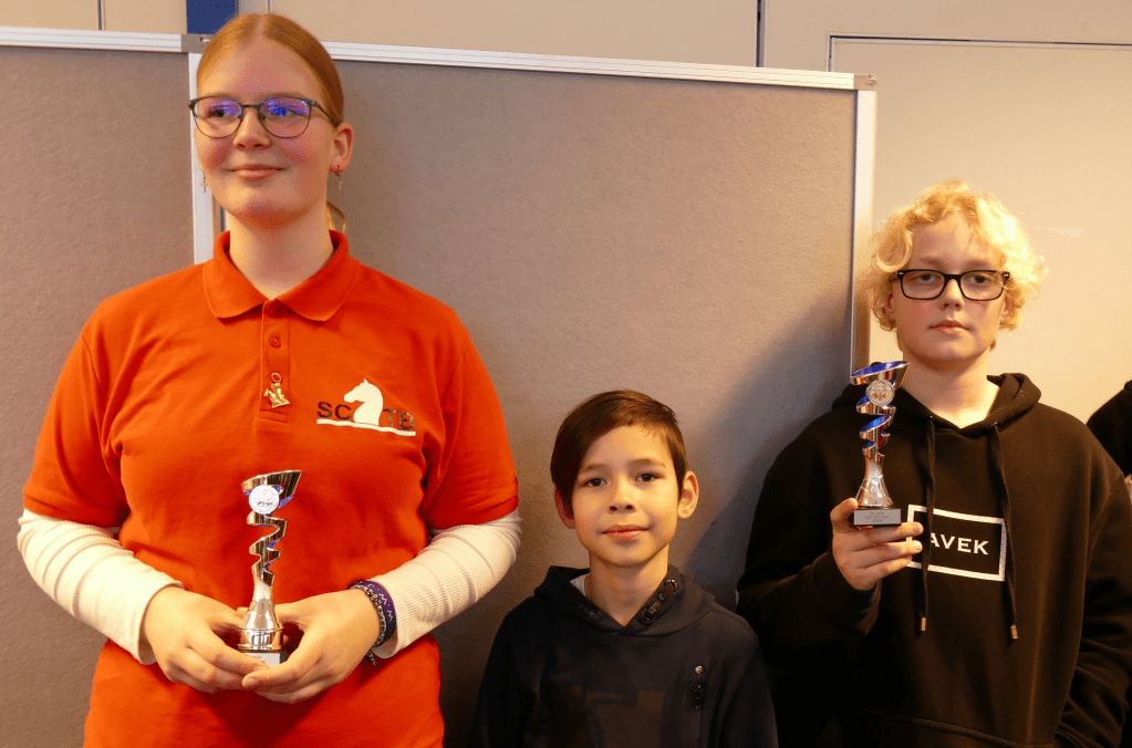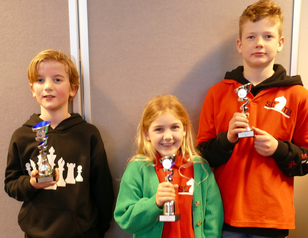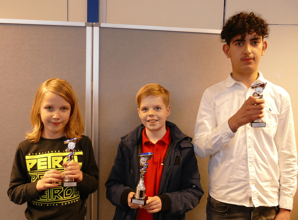 Hier viel Benthe Hagen is en ze begon direct met twee overwinningen. Helaas voor haar kwam er daarna de klad in. Emmenaar Artoer Shahnazaryan nam daardoor samen met Lucas Medendorp (Ten Boer) vanaf ronde vier de kop over. De beslissing viel pas in de laatste ronde. Ryan Borgman hielp zijn clubgenoot door Lucas te verslaan terwijl Artoer in een spannende pot met moeite wist te winnen van Benthe. Lucas werd tweedes. Emmenaren Ryan Borgman en Flin Vogelaar eindigden met 4 punten. Flin werd op onderling resultaat derdes.