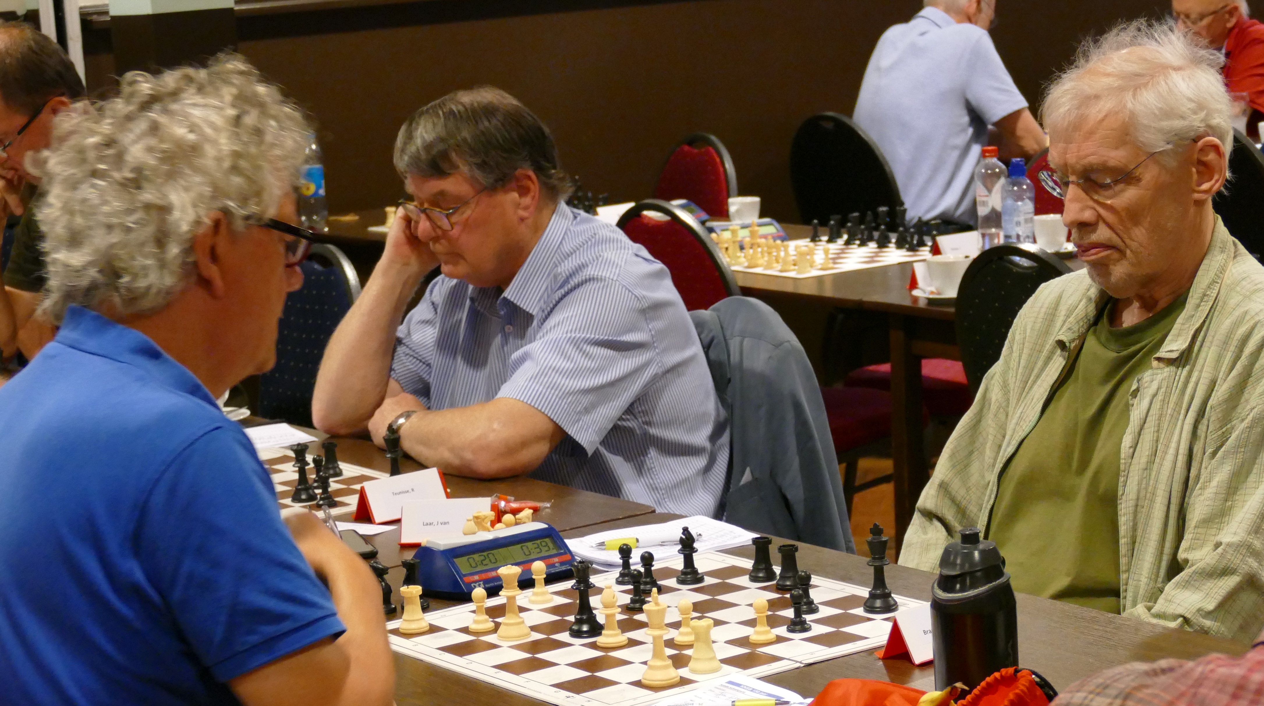 Ton ging er volgens eigen zeggen kansloos af en blijft dus op 1,5 punt staan. Morgen kan hij de 50% halen, maar dan moet hij wel winnen. Arie speelde remise tegen Jan Lootsma en mag morgen tegen Maarten Etmans. Die is met afstand de oudste deelnemer met 84 jaar. Evert won van de bij ons ook zeer bekende Gerard Grotenhuis. Volgens Ton was dit een heel knappe overwinning.