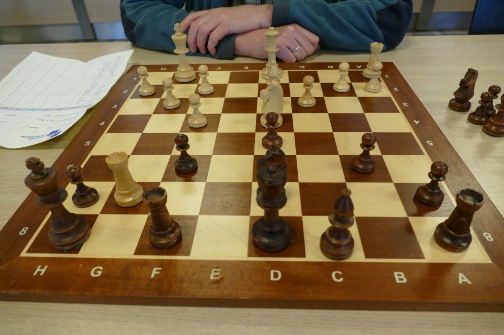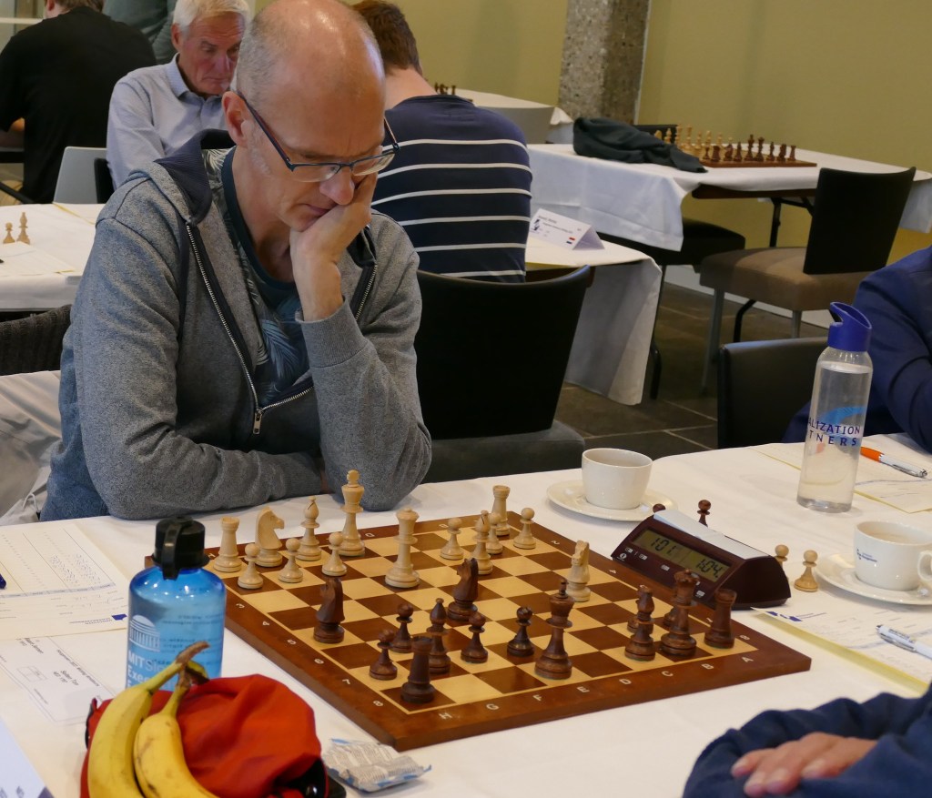 Arjen speelde vandaag een geweldige remise tegen de ervaren Boudewijn Hoogeboom die meer dan 200 ratingpunten meer heeft. Gisteren zei ik dat Arjen best kansen had. En dat bleek vandaag. Hieronder de opmerkingen van Arjen: