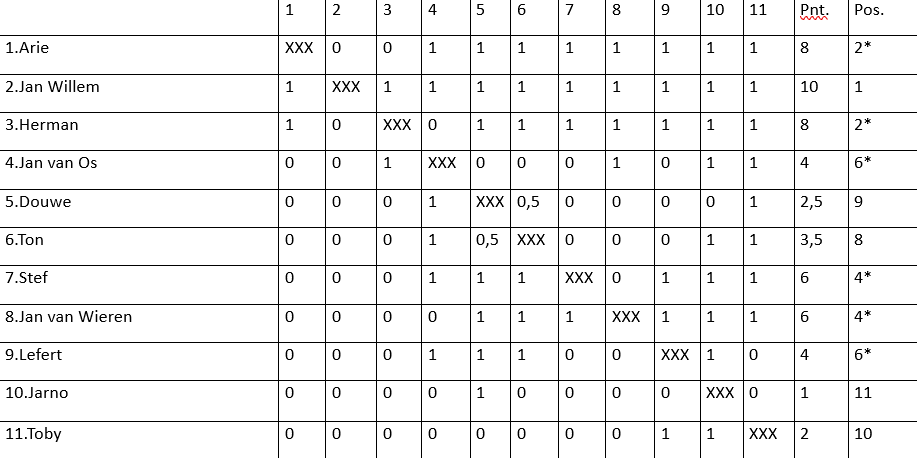 Het was jammer van de geringe opkomst. Wel weer leuk dat twee belangstellenden meespeelden en dat beslist niet onverdienstelijk deden.
