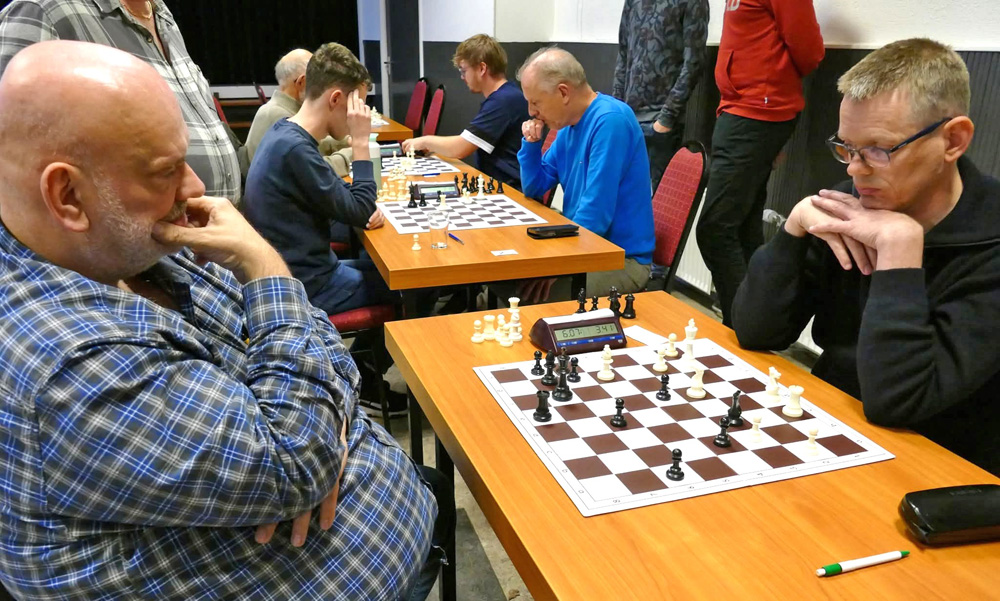 Er werd goed, sportief maar wel fel gestreden om de punten en dus een hoge waardering op de ranglijst. Daar waren wij, als ESGers wel goed in, maar vielen uiteindelijk wel allemaal buiten de prijzen. Die waren voor Jan Baljé uit Groningen (GC 3) en die (waarschijnlijk) ook de hoogste rating (2153) had van alle deelnemers. Jan scoorde de ene na de andere punt en in de beslissende strijd om de eerste plaats en werd tegen Bert van der Leest (van der Linde – Winschoten) het benodigde halfje binnen gehaald om het toernooi op zijn naam te schrijven. (foto onder) Jan scoorde 5½-6 terwijl Bert 5-6 behaalde.