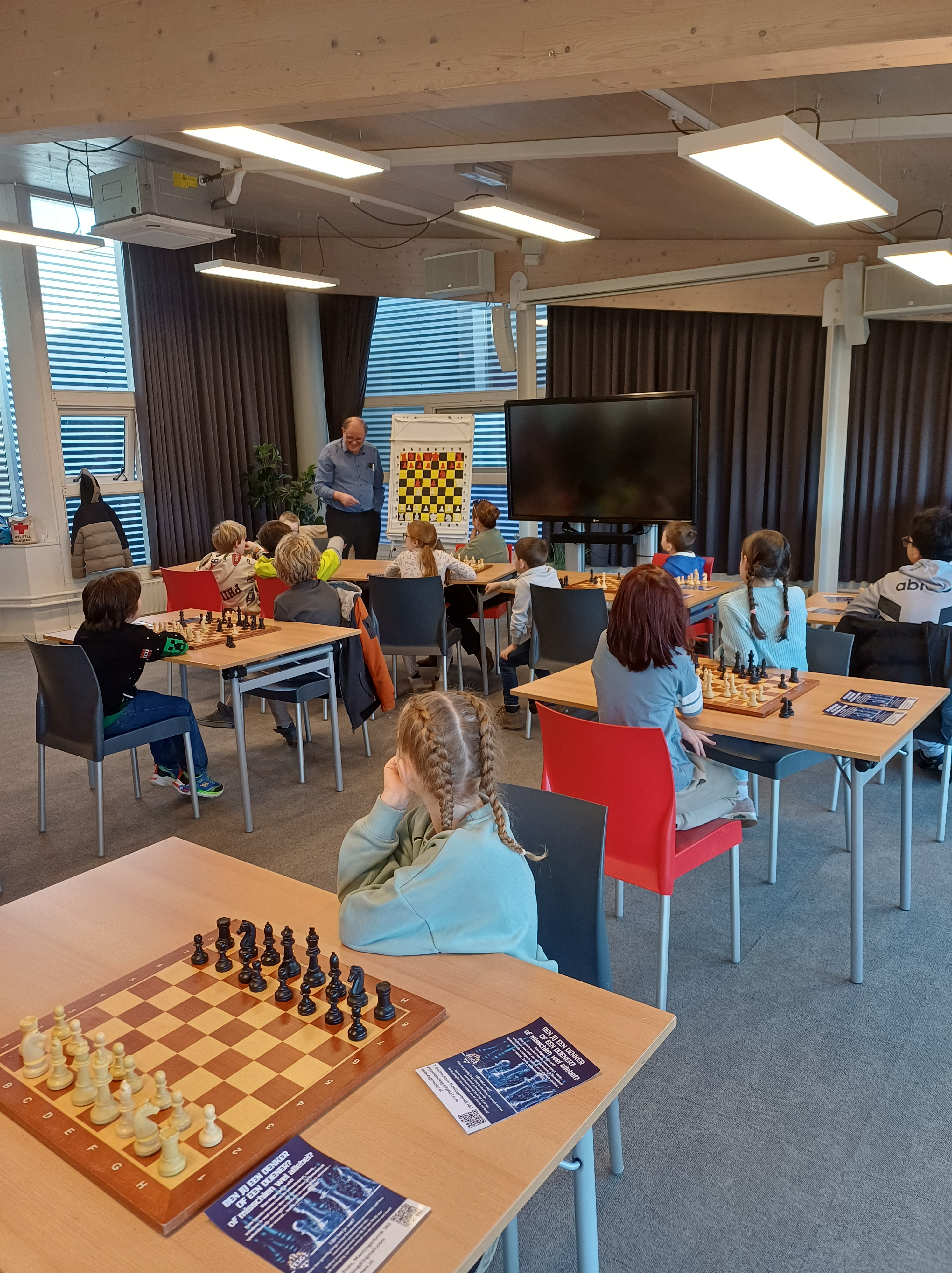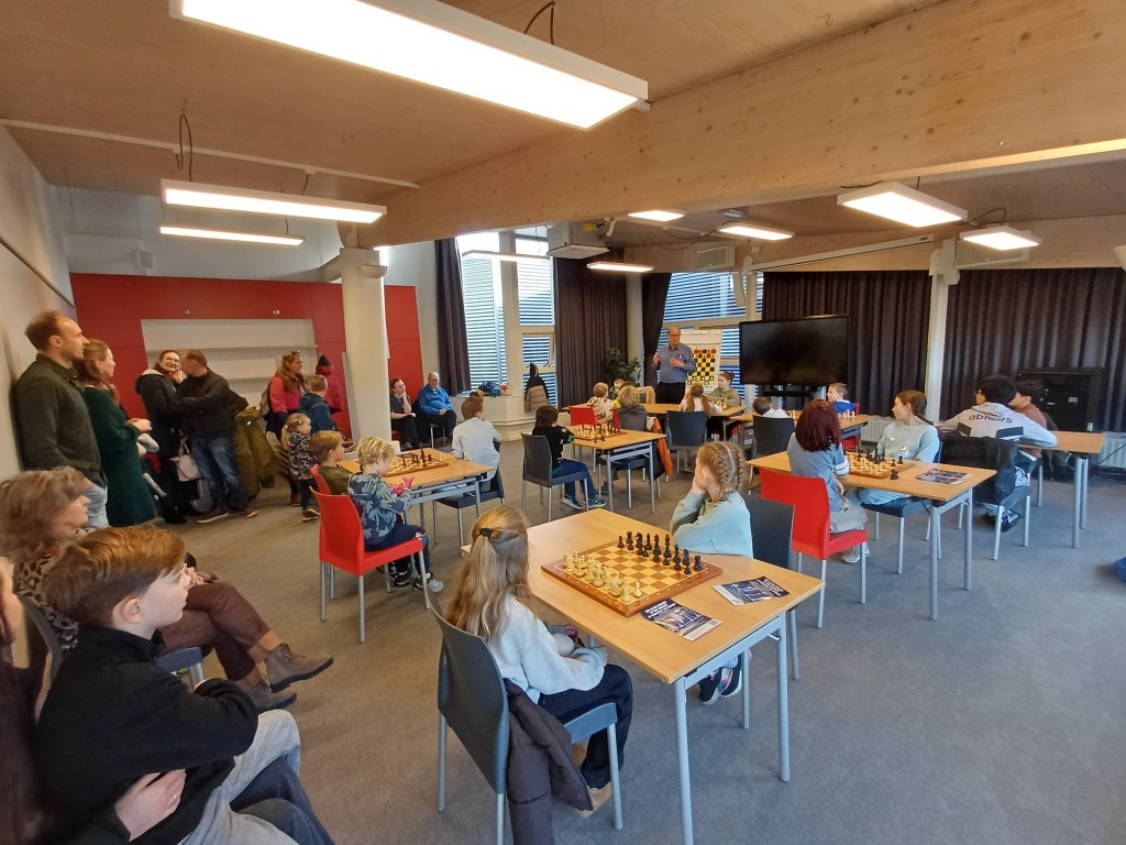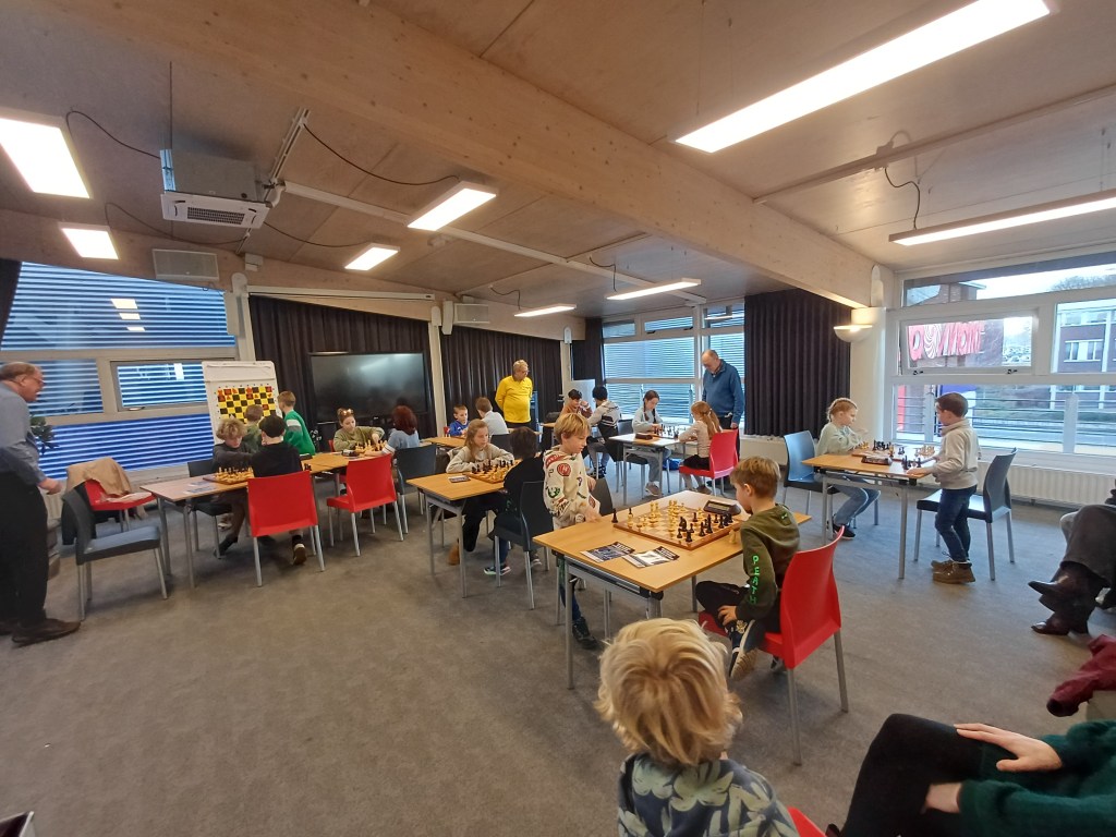 Dat was een supergoede schaakworkshop vanmiddag in Facet onder de bezielende leiding van Jan van Os, die de juiste inhoud op de juiste toon naar voren wist te brengen. Daarbij eerst vrij schaken gevolgd door een toernooi met een echte winnaar. Een overweldigende opkomst van 18 basisschoolleerlingen, die allen enthousiast afscheid namen. (Er hadden zich 12 opgegeven). Assistentie van Flip en mezelf was onontbeerlijk en zo ook de bijdrage van Willem Schepers, die prachtige flyers en affiches kwam afleveren, maar bleef om te assisteren.