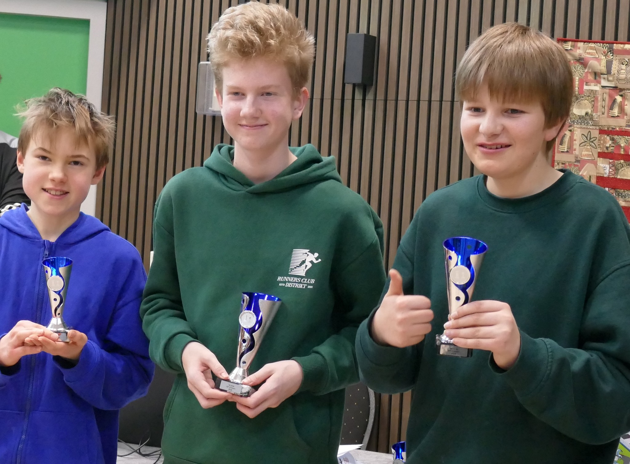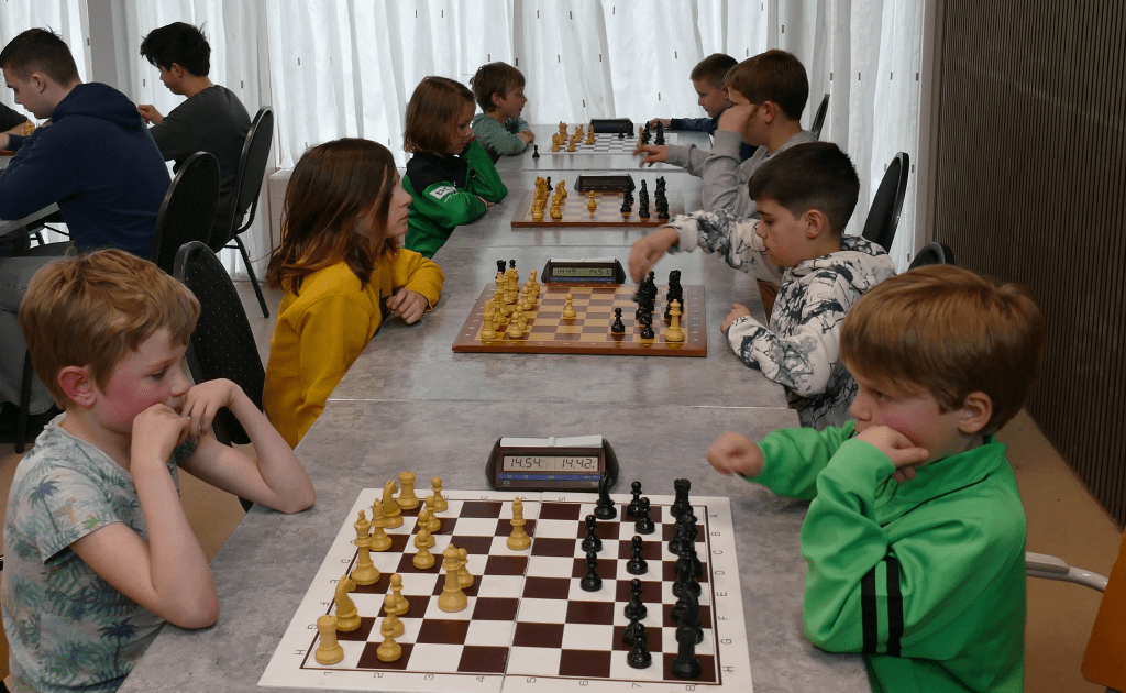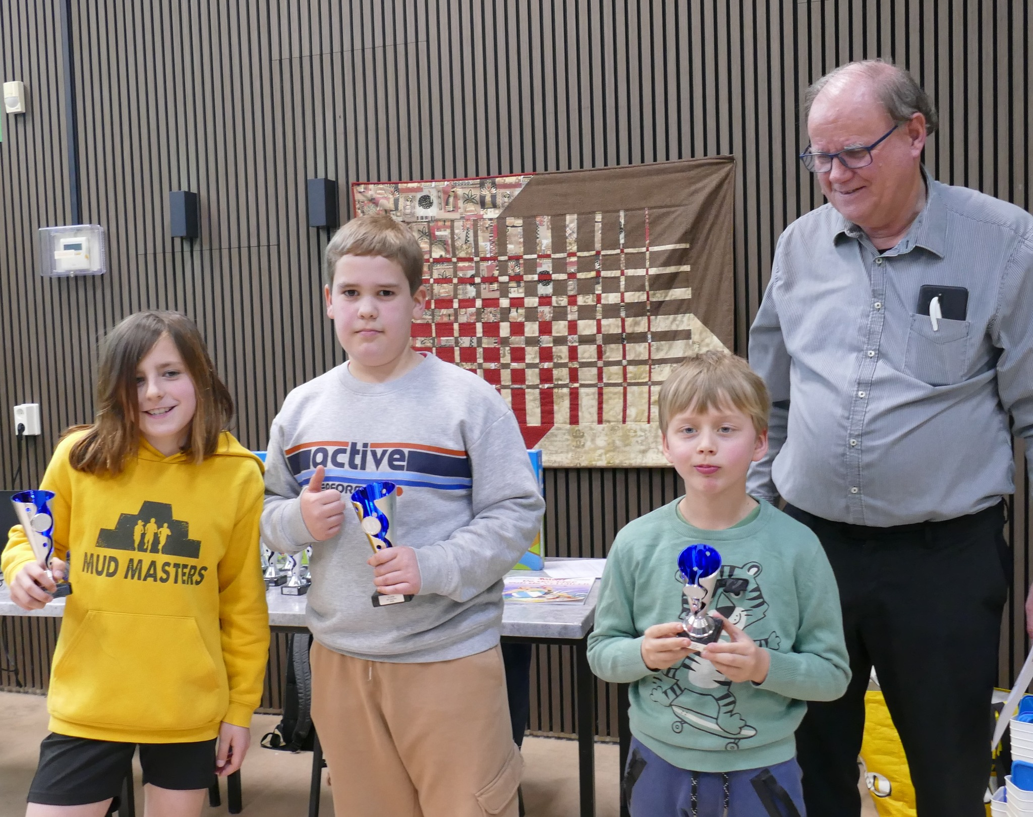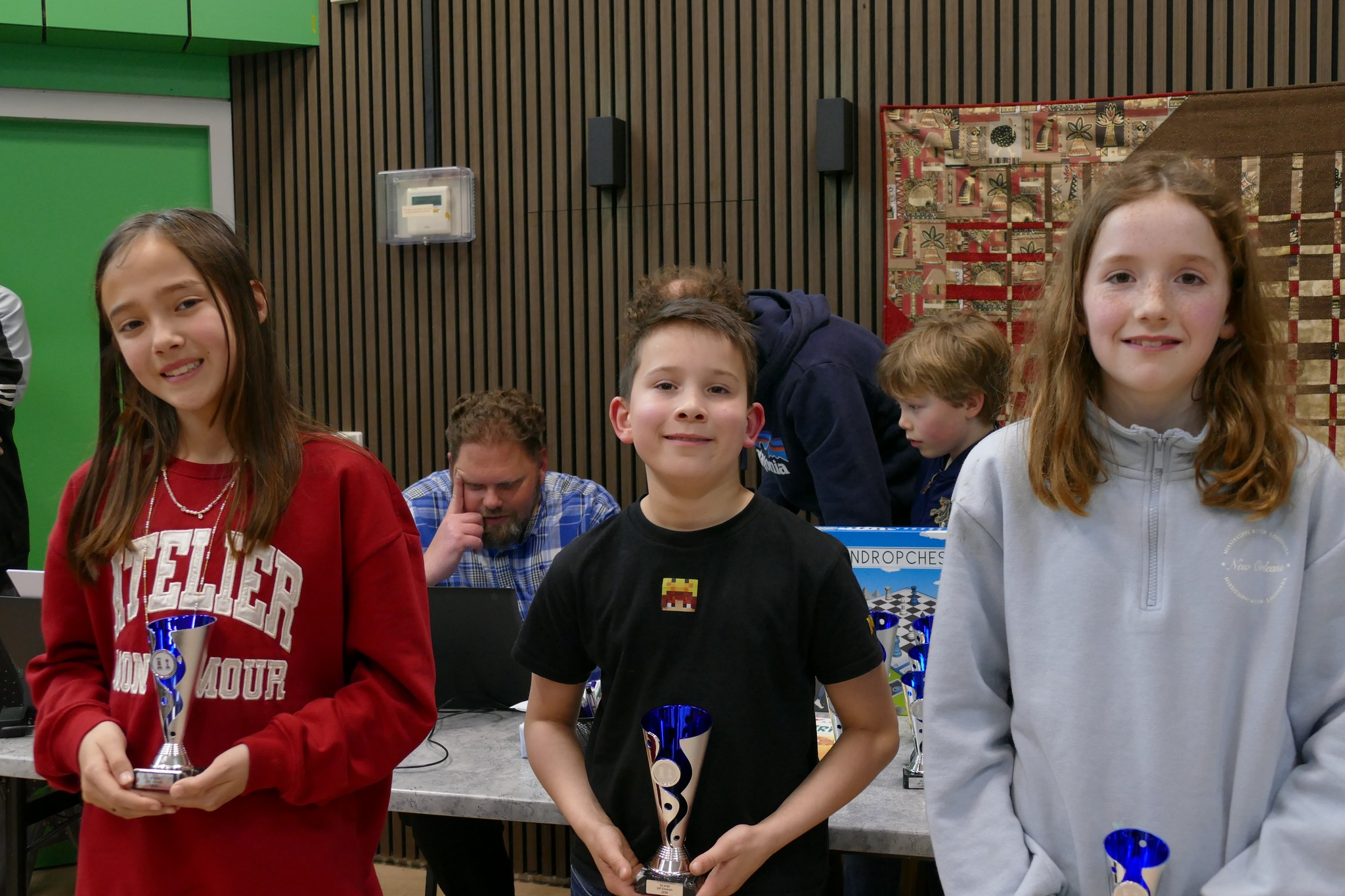 En dan de A-groep. Die bestond uit zes spelers en speelden dus vijf ronden met iets langere bedenktijd. Net als in de B-groep werd er hier hevig gestreden met enkele lange en ook goede partijen. Wart Koopman (Groningen) werd eerste met 3,5 punt en bleef daarmee Stijn Brink (Assen) en Olav Schuls (Groningen) een halfje voor.