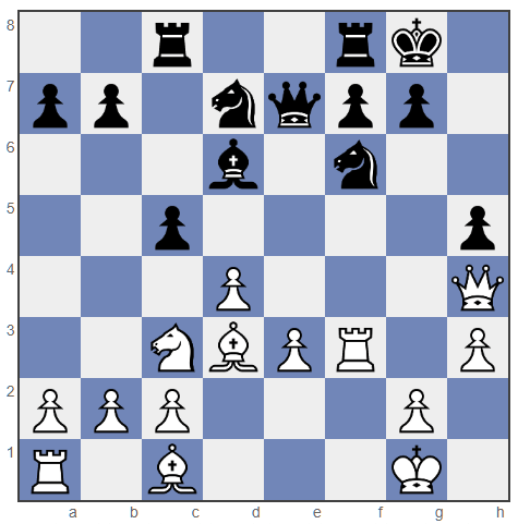 2r2rk1/pp1nqpp1/3b1n2/2p4p/3P3Q/2NBPR1P/PPP3P1/R1B3K1 b – – 0 13