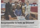 Dit stond vandaag in de zuidoosthoeker. Sinds een paar weken zijn Emanuel en zijn zusje Damilola lid van onze schaakclub. Ze hopen bij ESG ook diploma’s te halen.