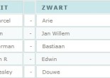 1 Jan Willem 4 2 Herman / Jan v O 3,5 4 Arie / Wesley 3 6 Marcel / Almar 2 8 Ton / Sergei / Rens 1 Hiermee is … Lees verder