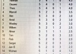 1 Herman 190.50 2 Jan Willem 177.00 3 Anneke 154.50 4 Wesley 137.00 5 Sergei 133.50 6 Ton 125.67 7 Almar 125.00 8 Arvid 116.33 9 Arie 115.50 10 Bianca … Lees verder
