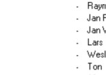 Herman – AnnekeWesley – ArvidSergei – ArieRob – TheoQuinten – EdwinHans – Jan BRaymond – ArjenFlip – LarsJan R – Bastiaan