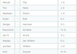 Flip – Arjen 0-1Edwin – Jan R 0-1Anneke – Lars 1-0Arie – Marcel 1-0Douwe – Bastiaan 1-0Willem – Herman 0-1Ton – Jan Willem 0-1Sergei – Rob 1-0Quinten – Raymond 0-1Hans … Lees verder