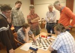 Om 2 uur is de partij van Peter begonnen. Op bord 19 (één na laatste) is zijn partij te volgen. Op dit moment is Peter bij zet 12